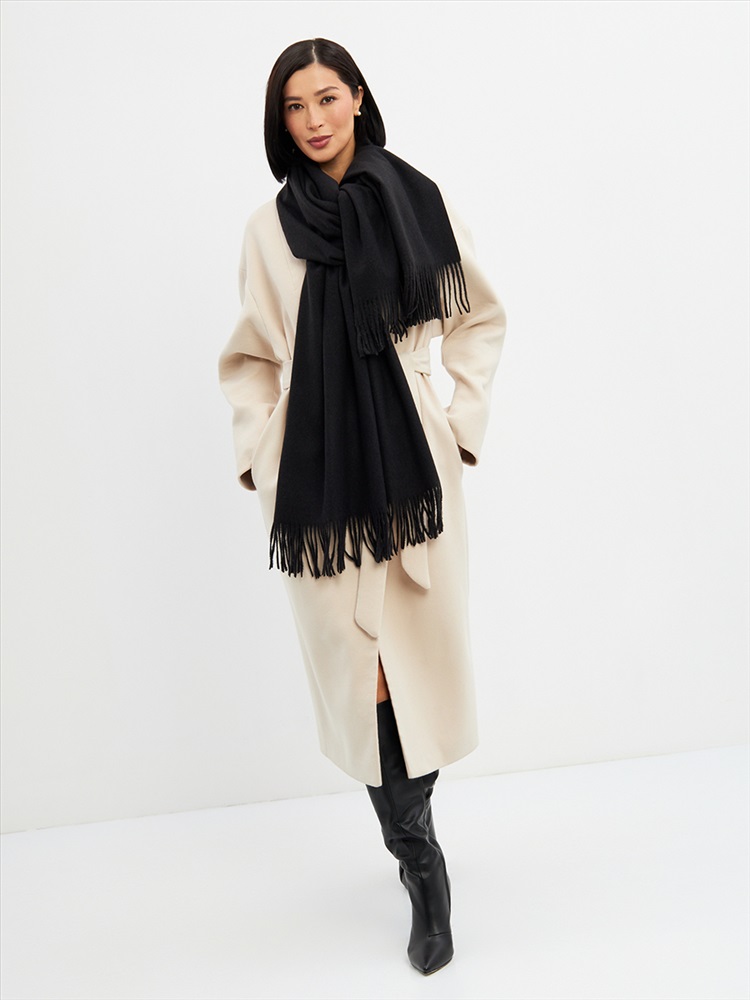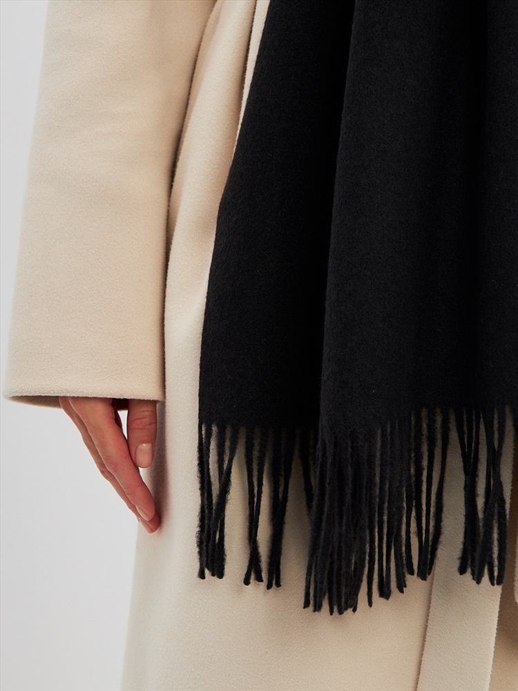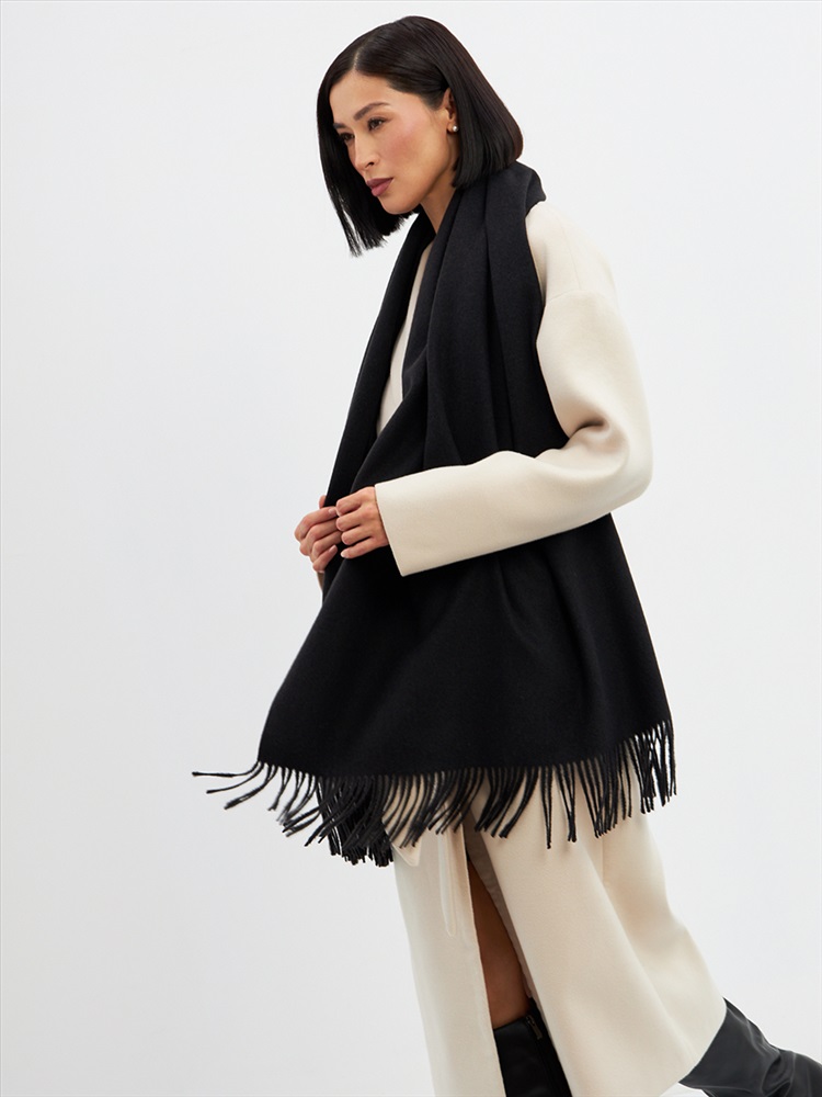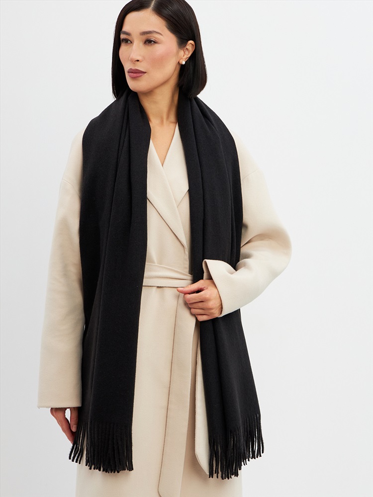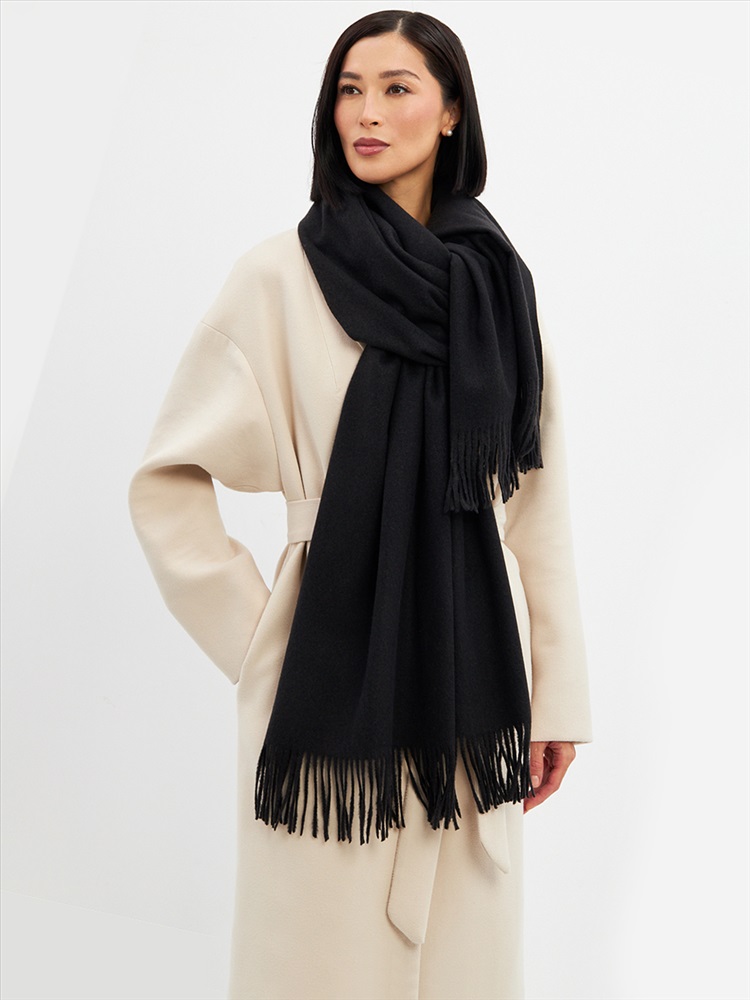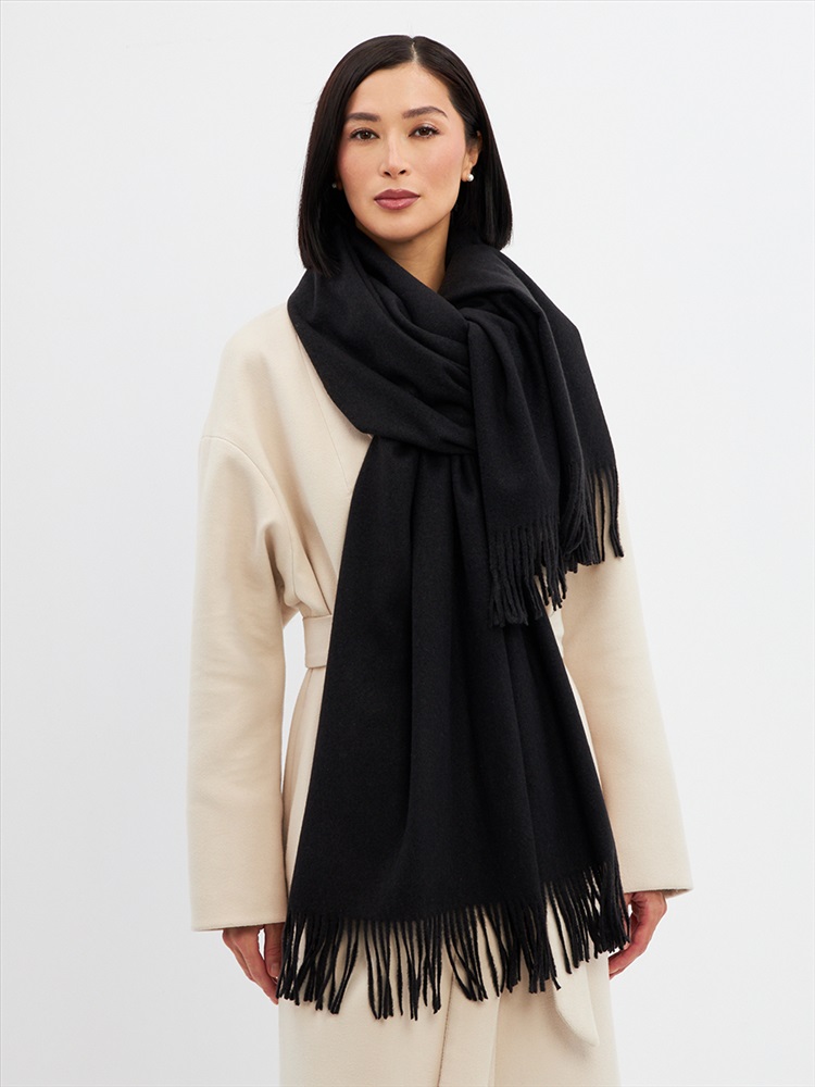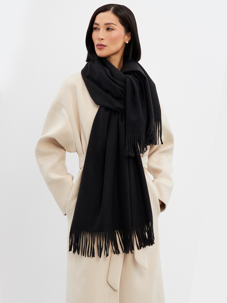 Цвет: Черный Состав: Вискоза, Шерсть, Кашемир Состав: Кашемир 25% Шерсть 20% Вискоза 55% Принт: Однотонный Большой, мягкий, теплый двусторонний однотонный палантин. Края изделия украшены кистями. Машинная деликатная стирка. Комментарии к товару