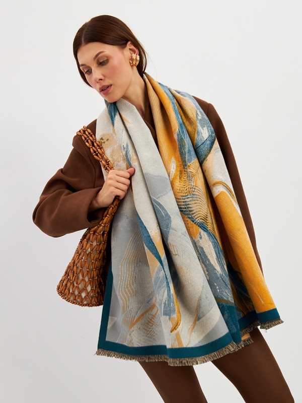 Принт: Абстракция Большой, мягкий, теплый и очень нежный палантин с рисунком. Машинная деликатная стирка.