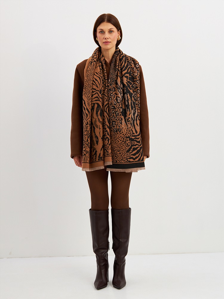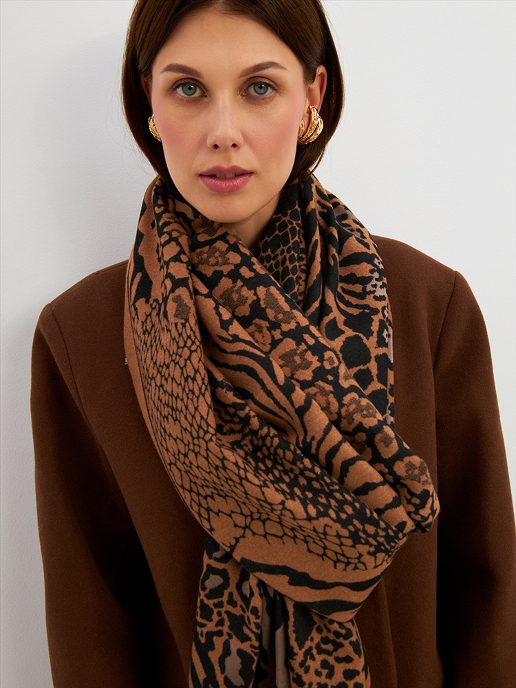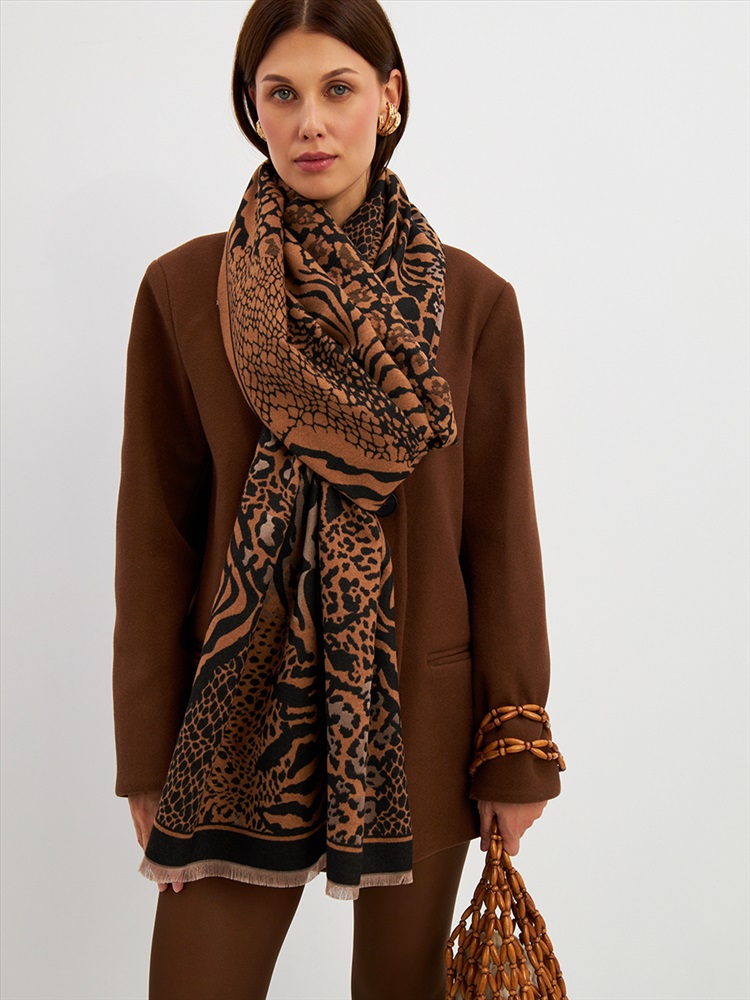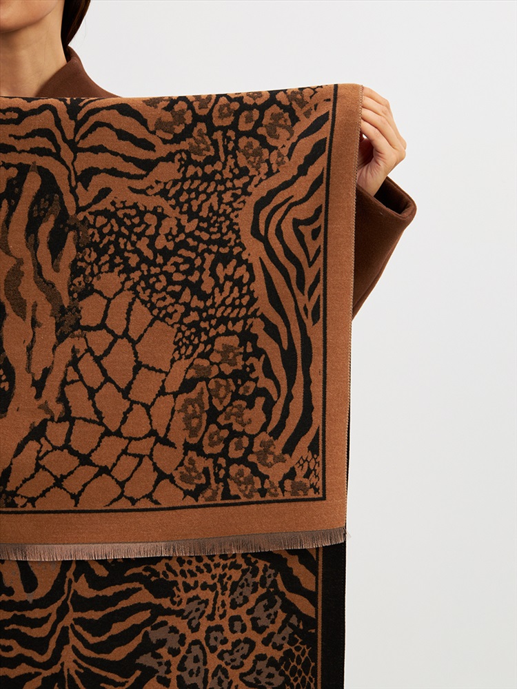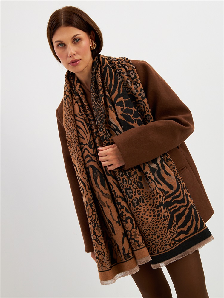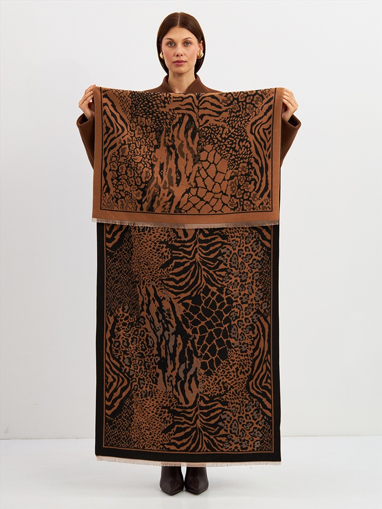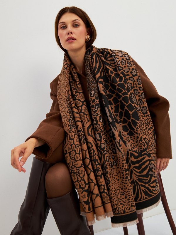 Большой, мягкий, тонкий и очень нежный палантин с рисунком. Края изделия украшены бахромой ручной работы. Машинная деликатная стирка.