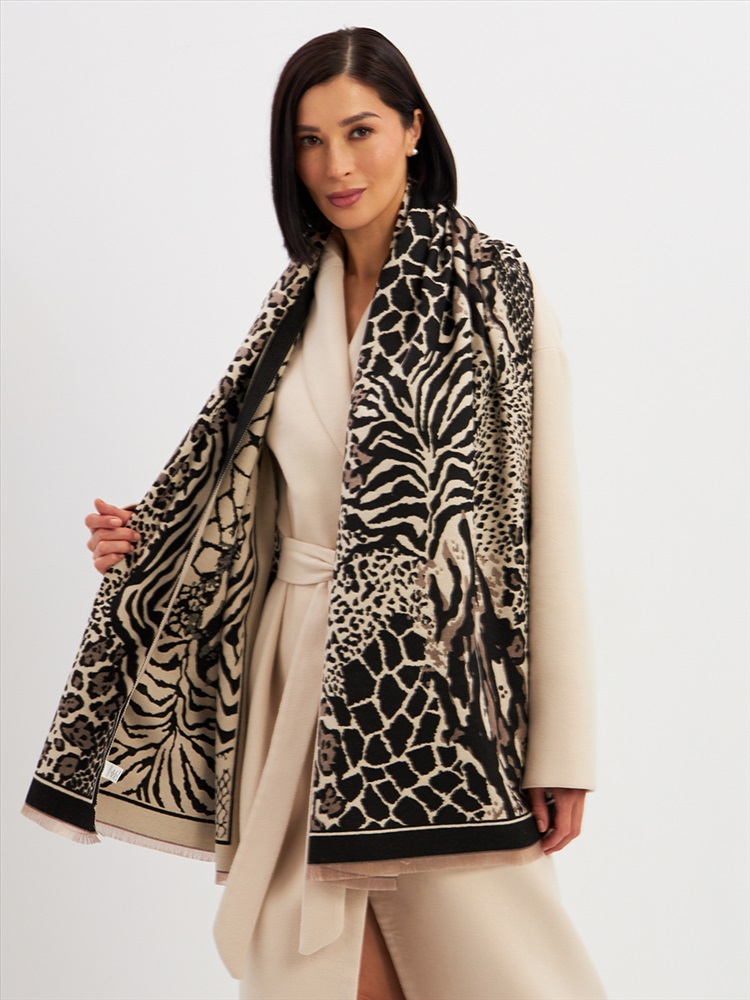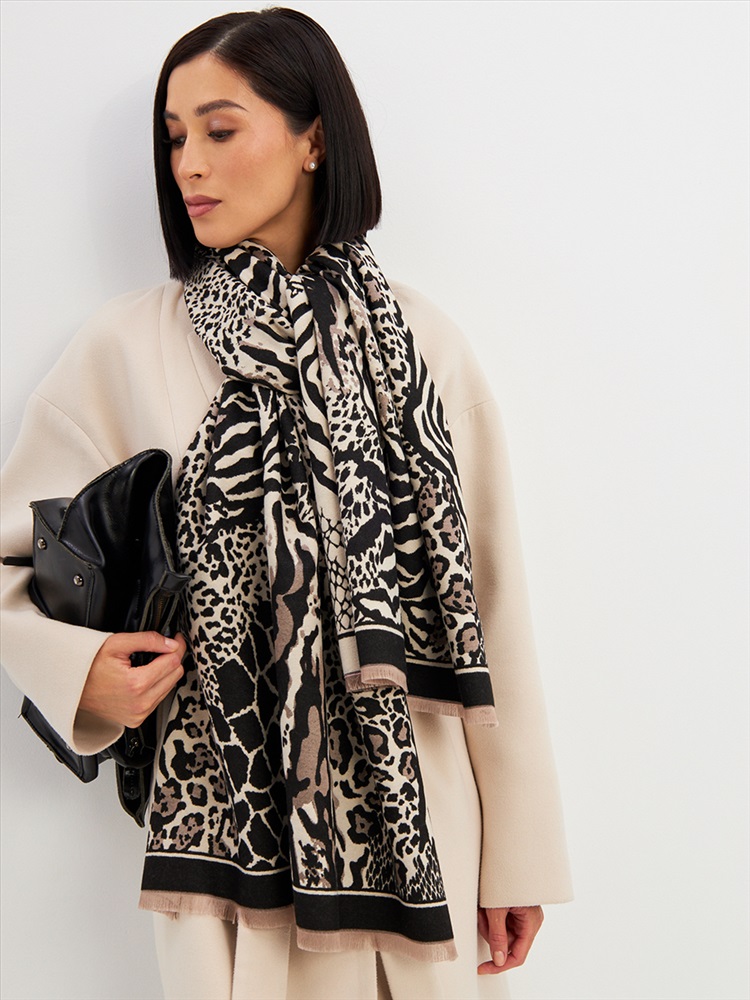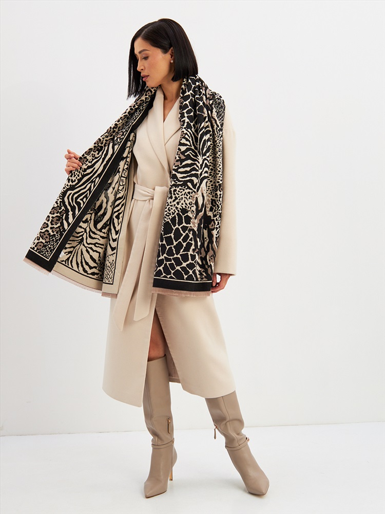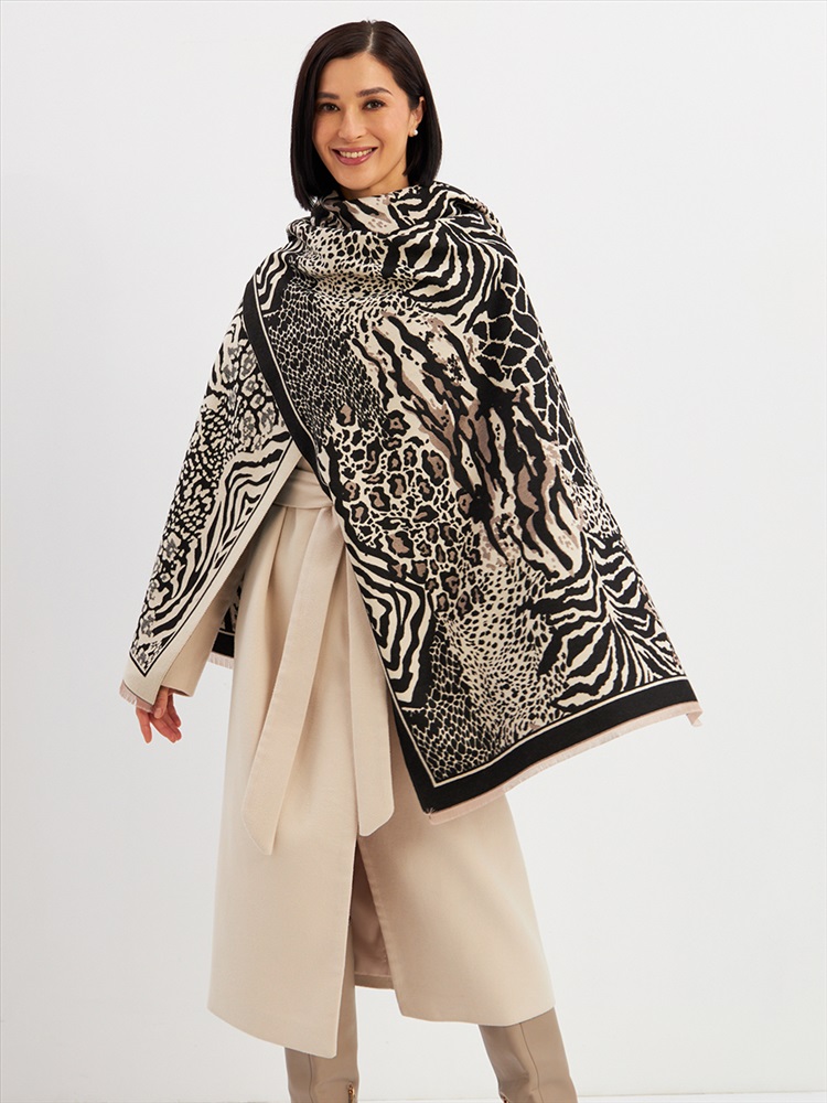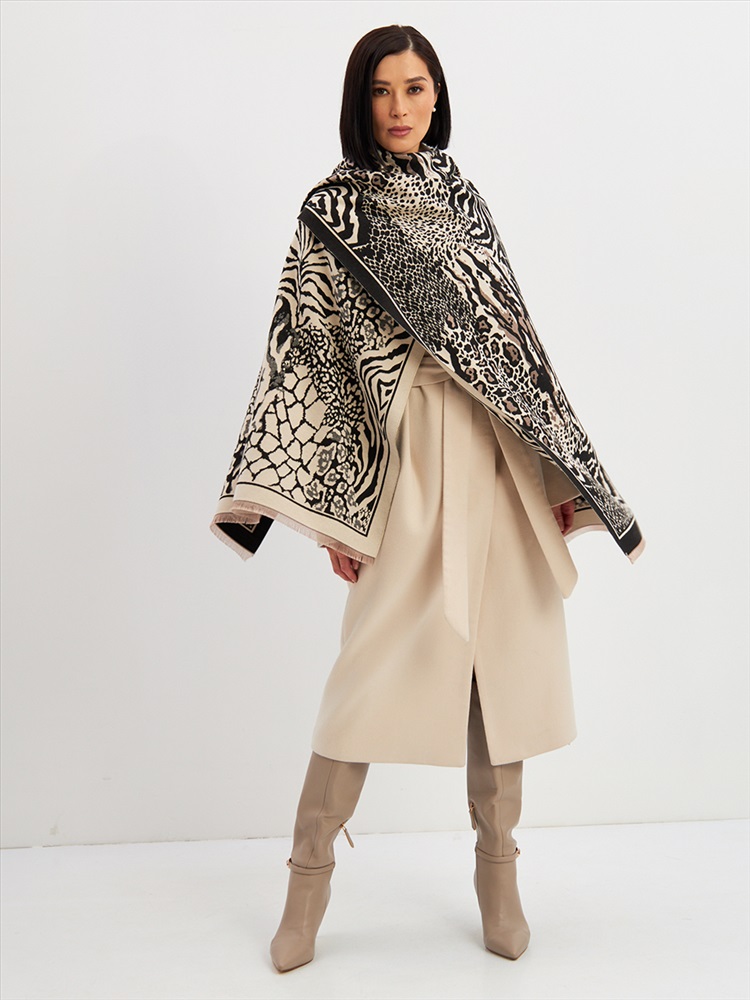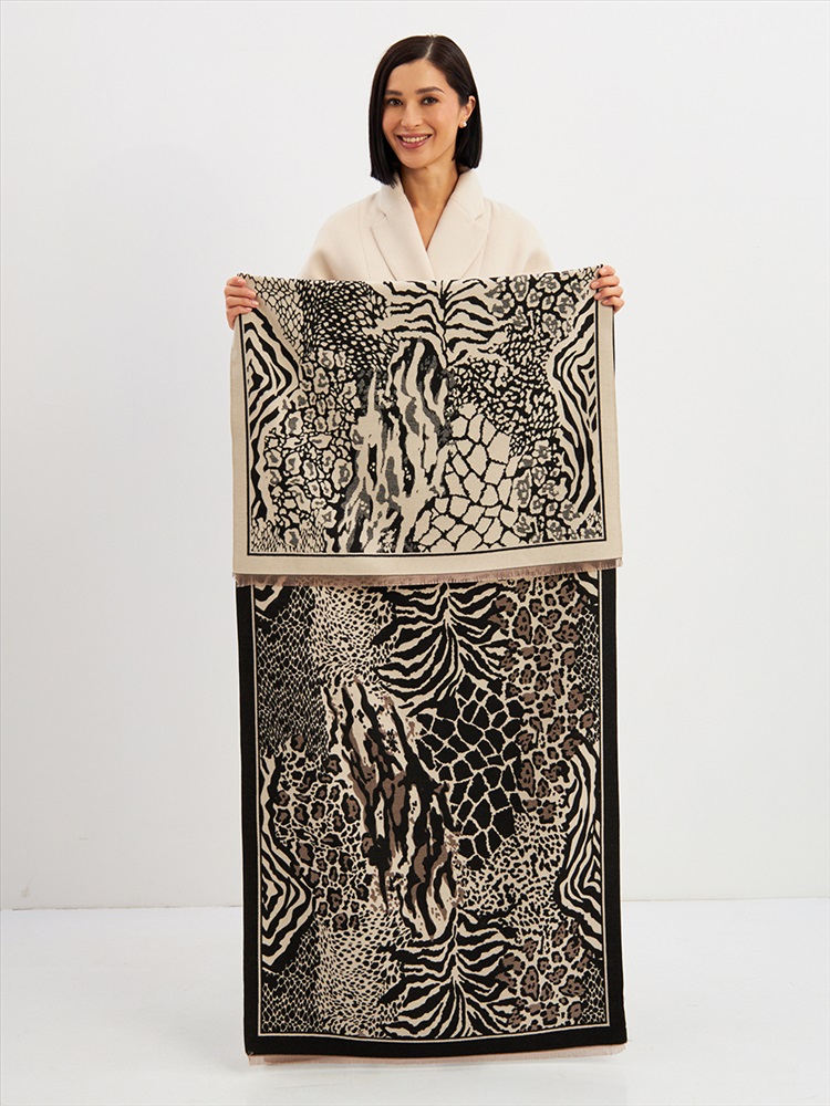 Большой, мягкий, тонкий и очень нежный палантин с рисунком. Края изделия украшены бахромой ручной работы. Машинная деликатная стирка.