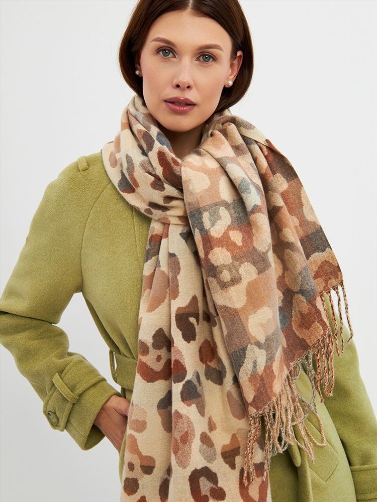 Цвет: Горчичный, Графит, Шоколад Состав: 55% вискоза, 25% кашемир, 20% шерсть Состав: Вискоза, Шерсть, Кашемир Размер: 70 x 180 см Принт: Животный (леопард) Большой, мягкий, тонкий, но очень теплый палантин с рисунком. Края изделия украшены бахромой ручной работы. Машинная деликатная стирка. Комментарии к товару