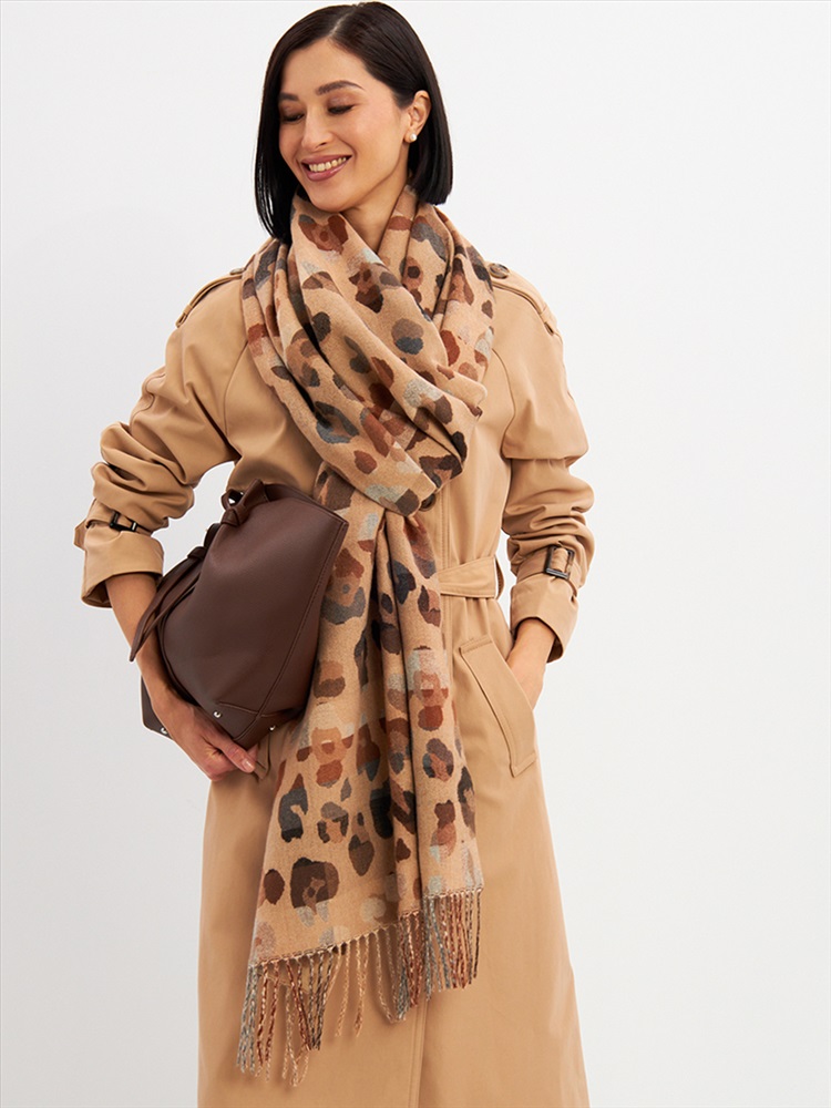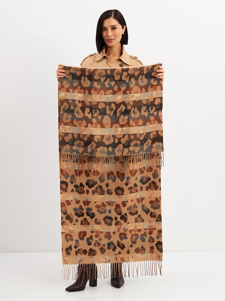 Большой, мягкий, тонкий и очень нежный палантин с рисунком. Края изделия украшены бахромой ручной работы. Машинная деликатная стирка.