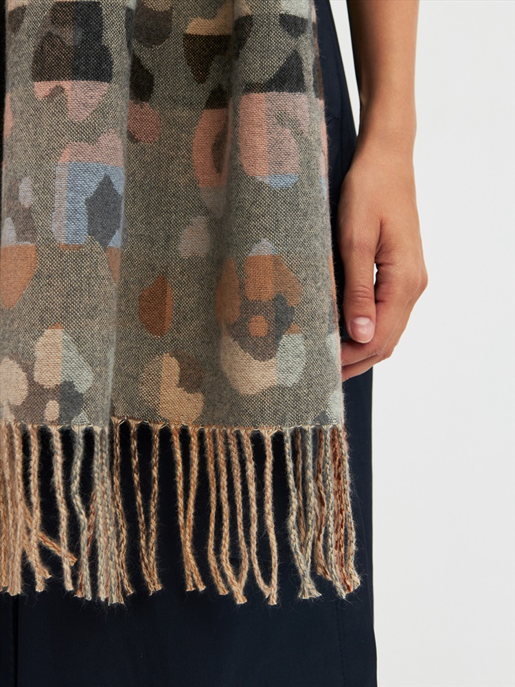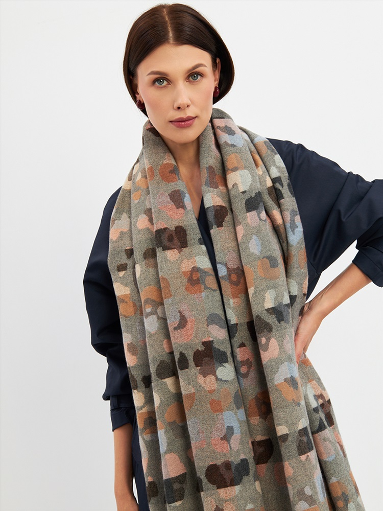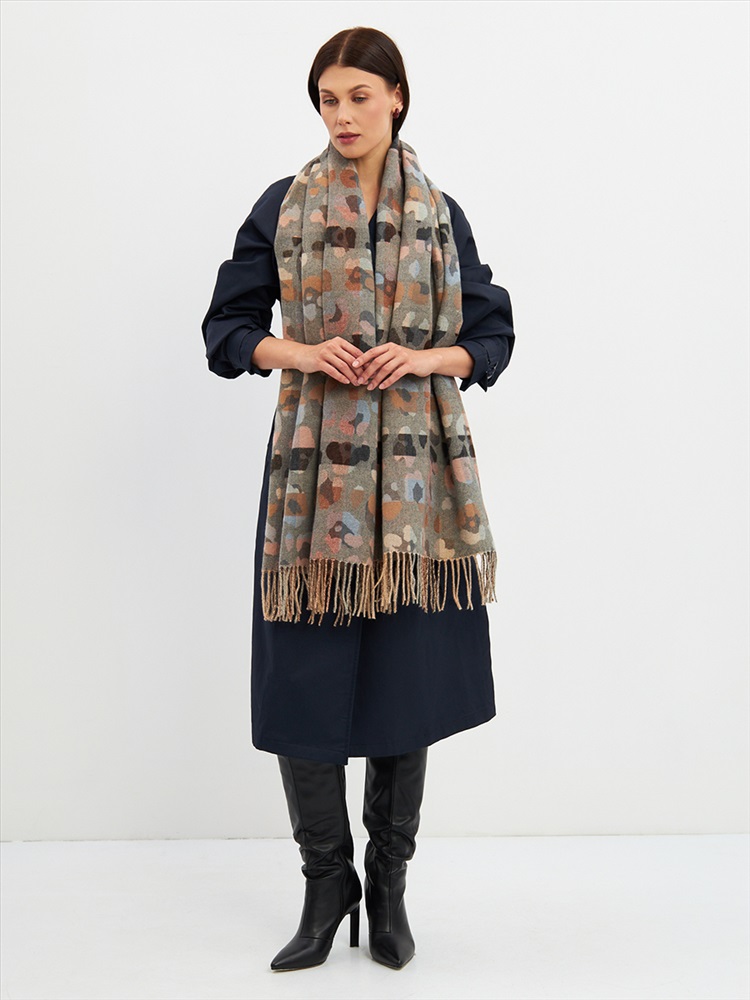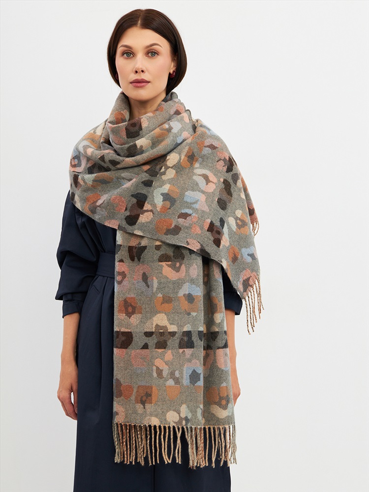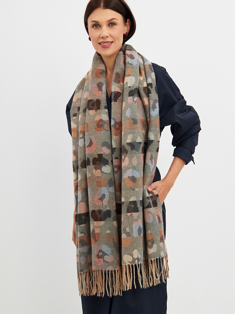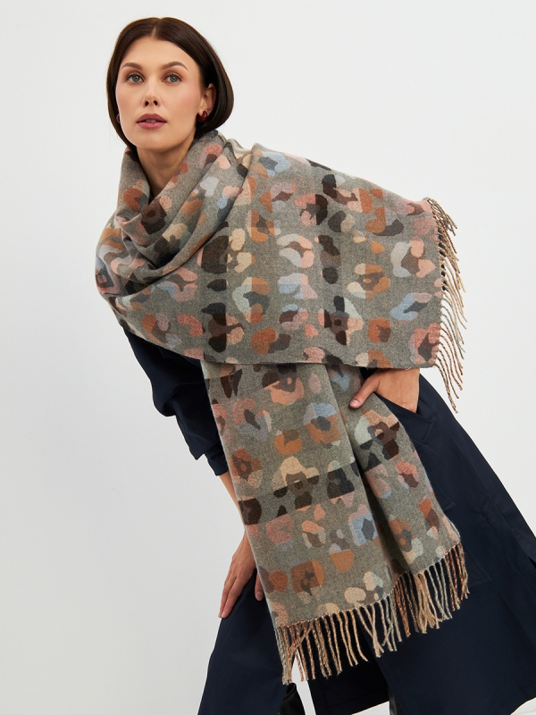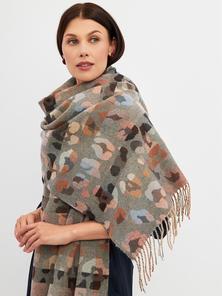 Большой, мягкий, плотный и очень нежный палантин с рисунком. Края изделия украшены бахромой ручной работы. Машинная деликатная стирка.