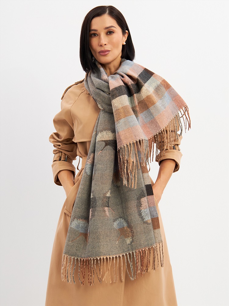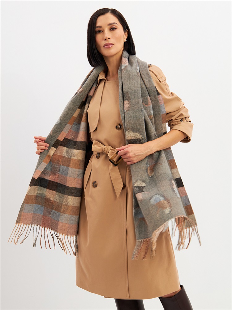 Цвет: Бежевый, Серый Состав: 55% вискоза, 25% кашемир, 20% шерсть Состав: Вискоза, Шерсть, Кашемир Размер: 70 x 180 см Принт: Абстракция Большой, мягкий, тонкий и очень нежный палантин с рисунком. Края изделия украшены бахромой ручной работы. Машинная деликатная стирка. Комментарии к товару