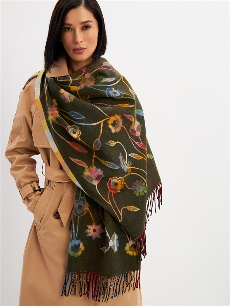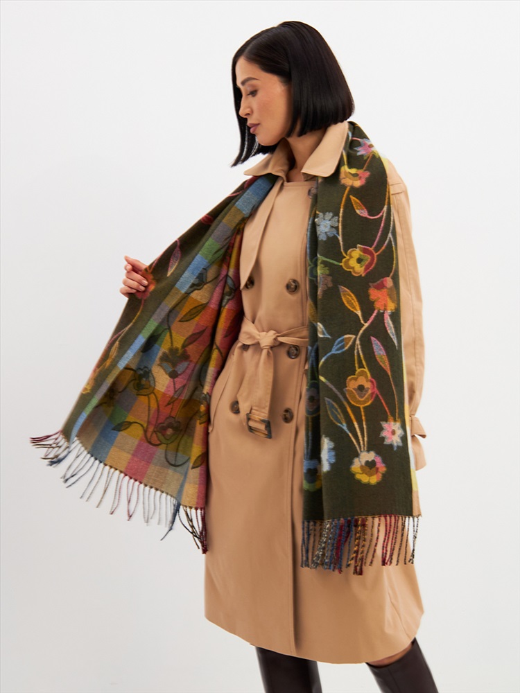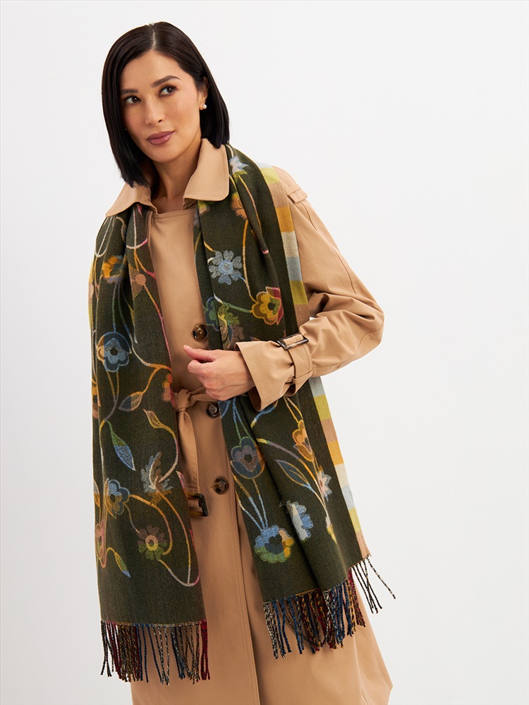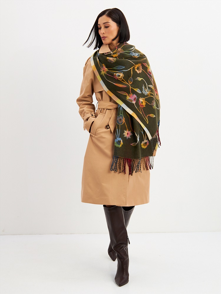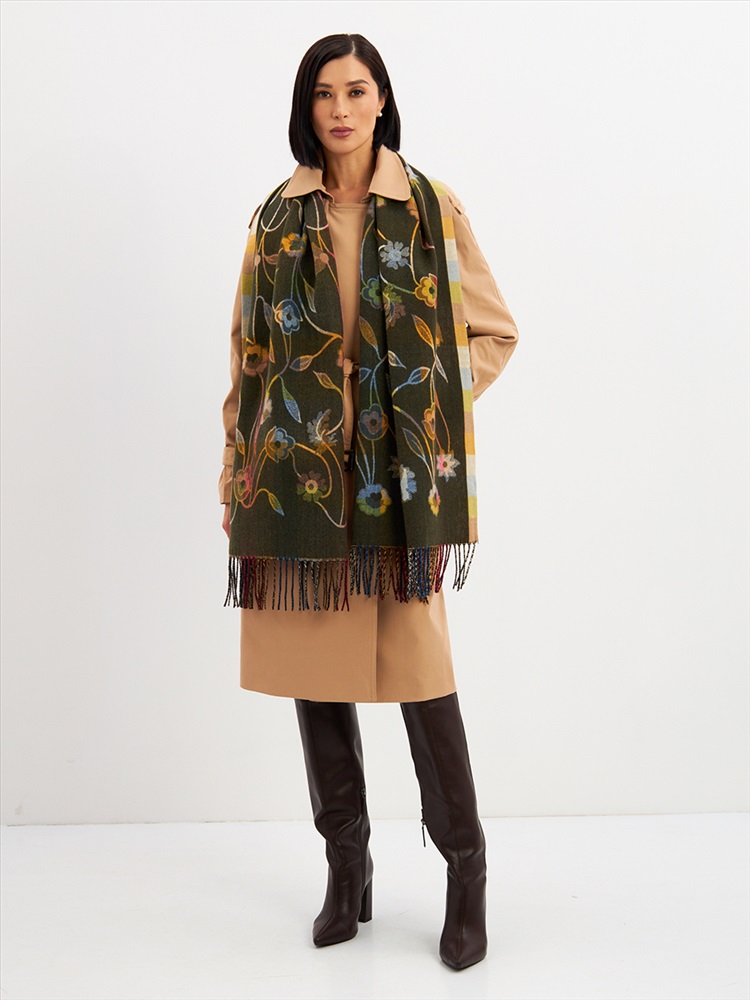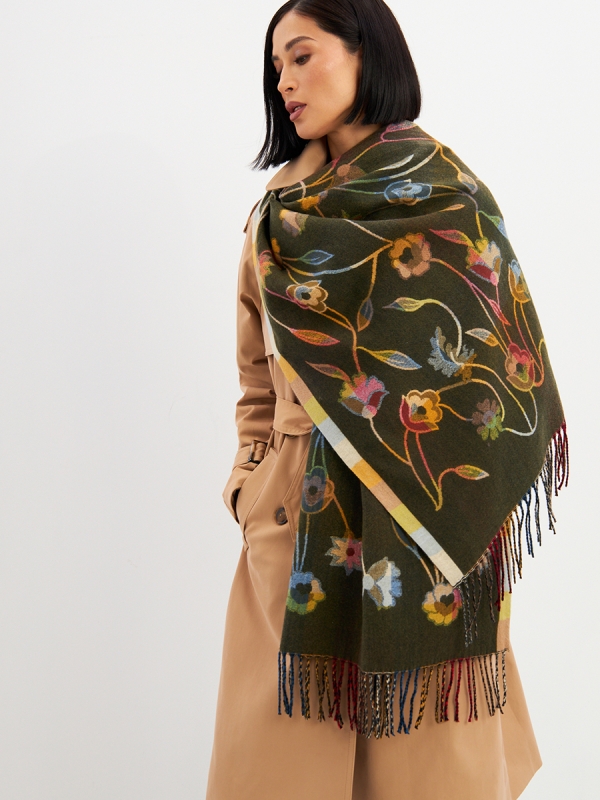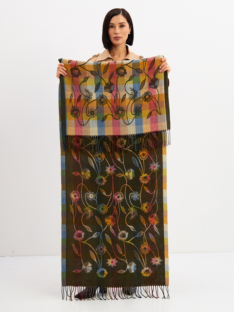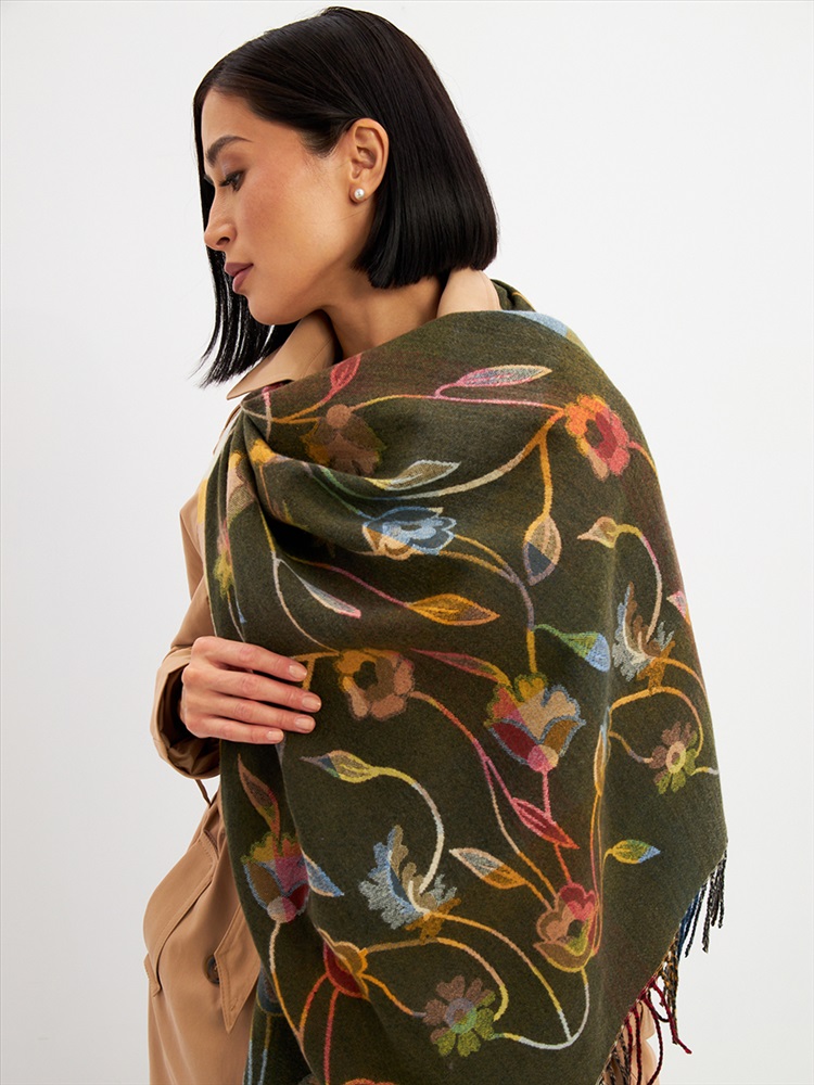 Большой, мягкий, тонкий и очень нежный палантин с рисунком. Края изделия украшены бахромой ручной работы. Машинная деликатная стирка.