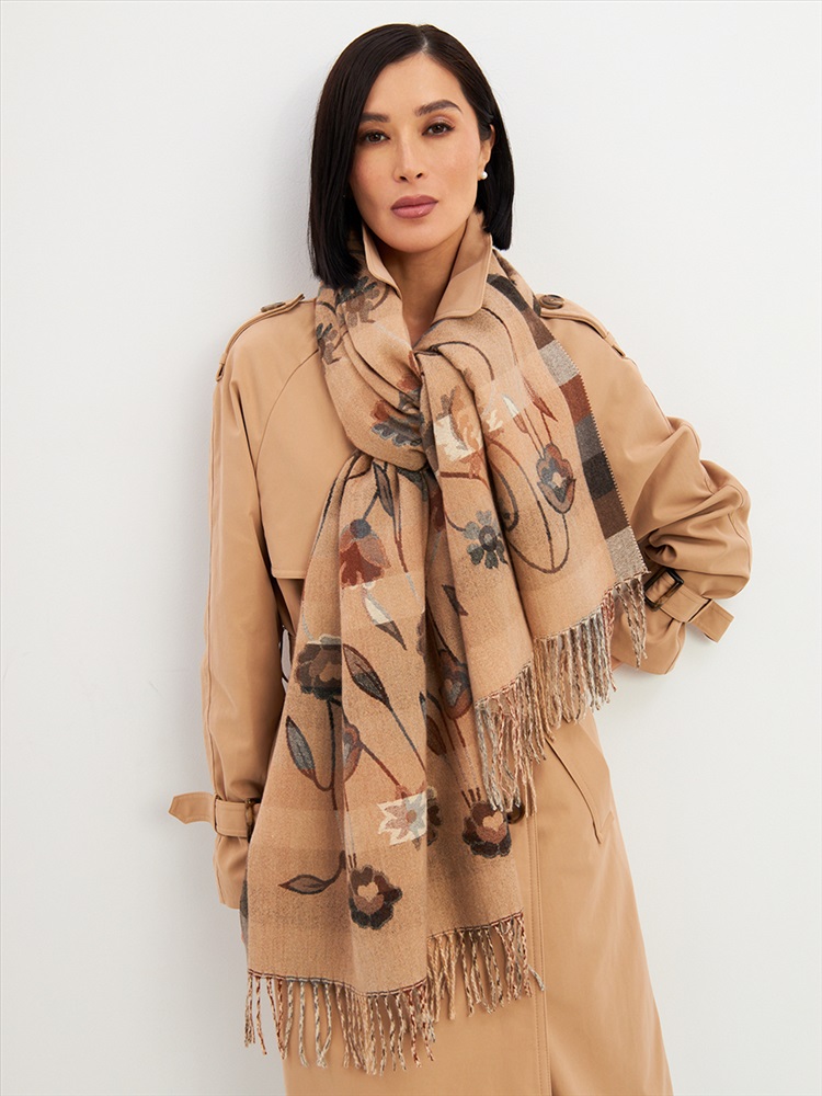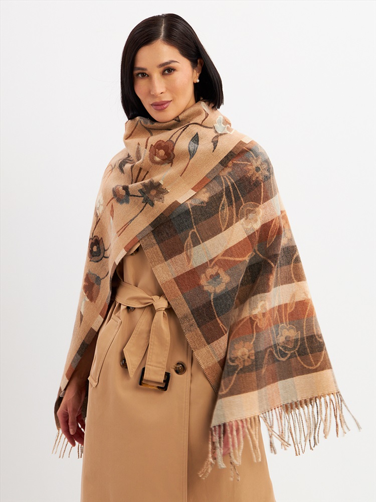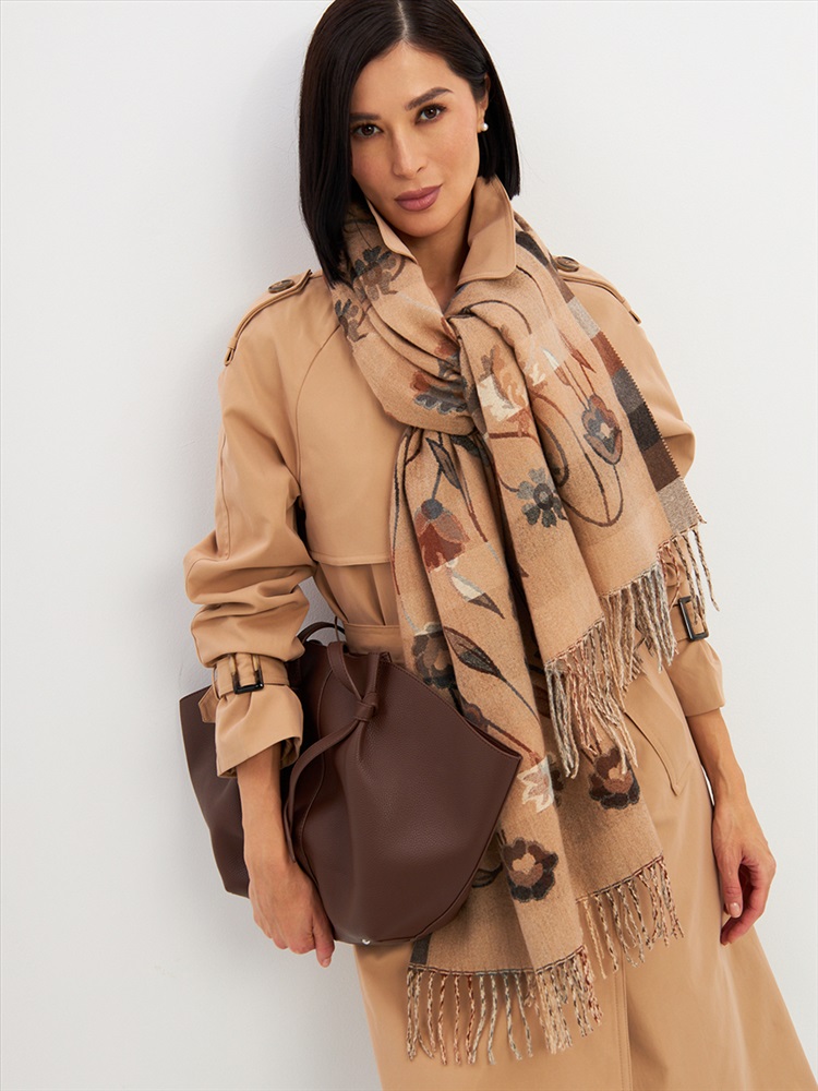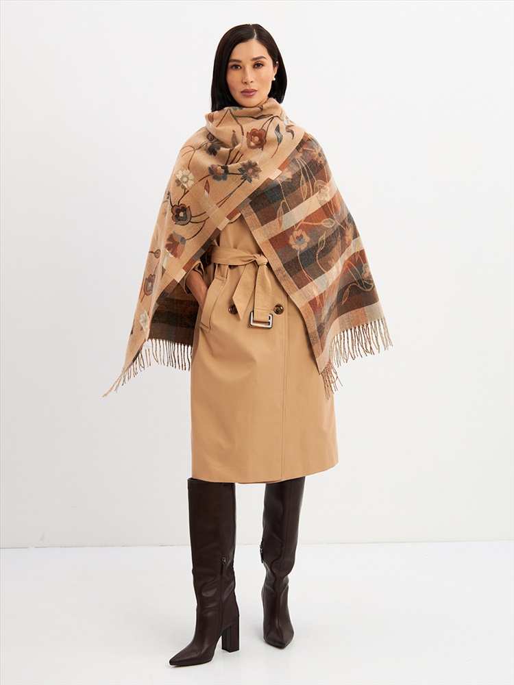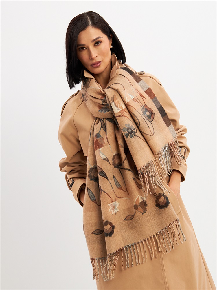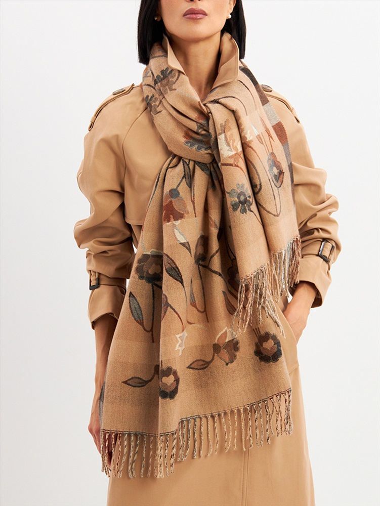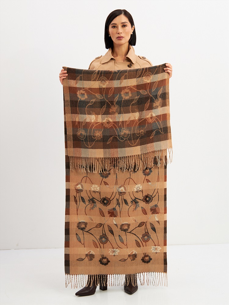 Большой, мягкий, тонкий и очень нежный палантин с рисунком. Края изделия украшены бахромой ручной работы. Машинная деликатная стирка.