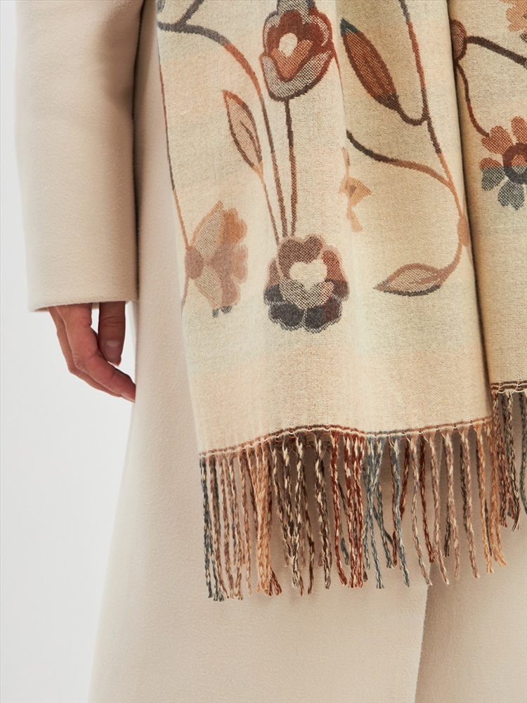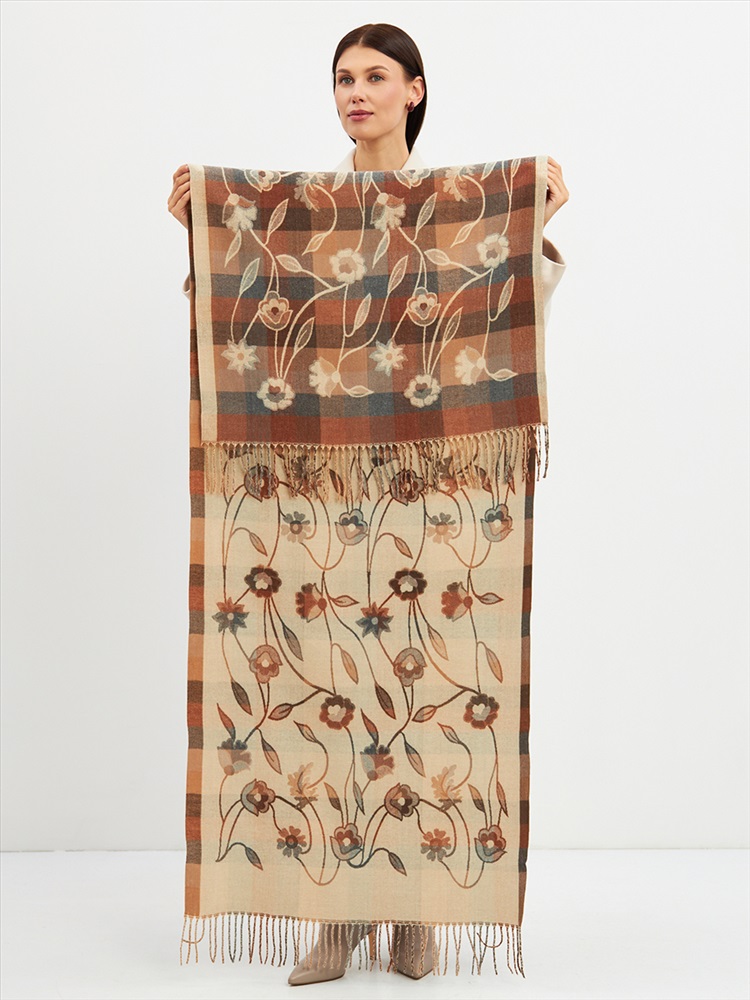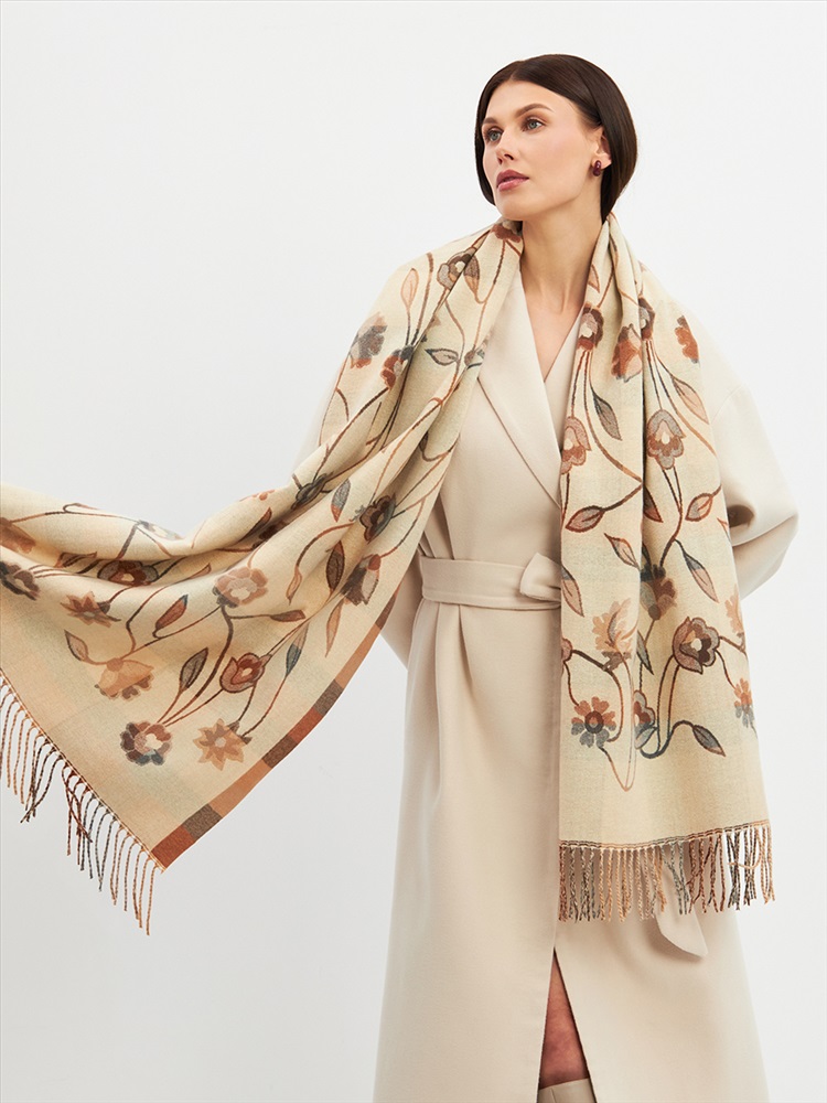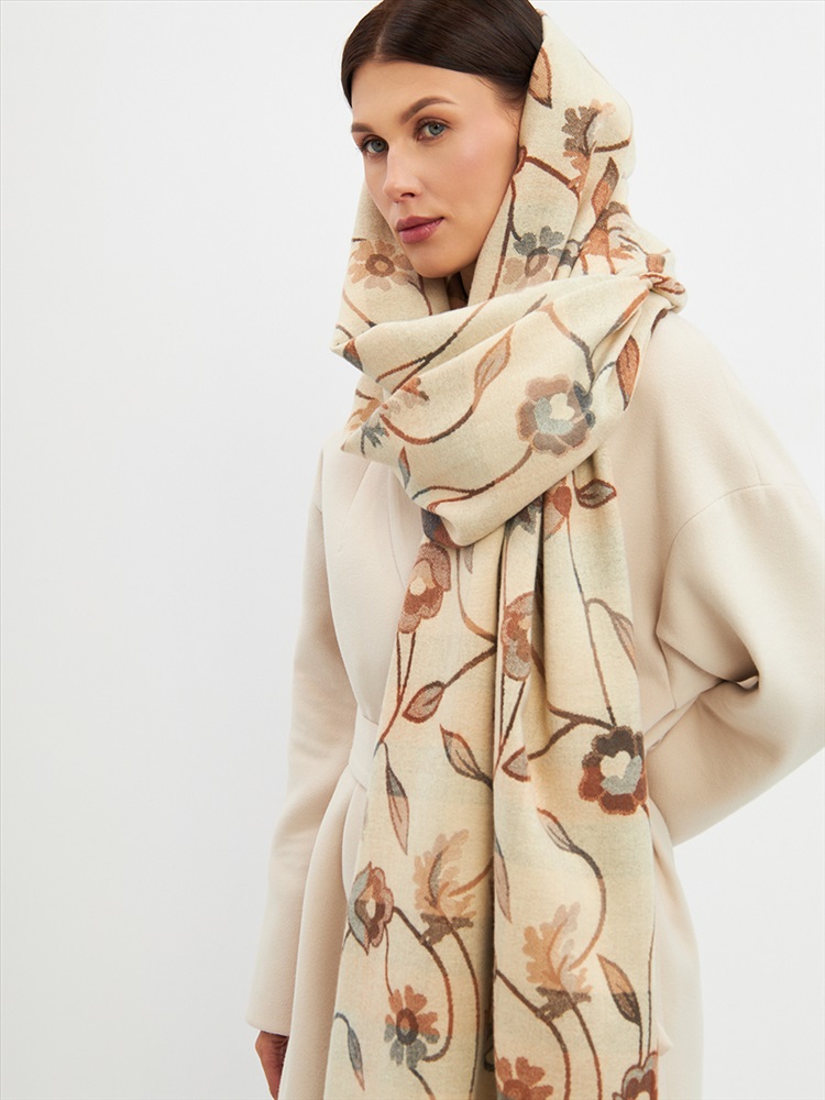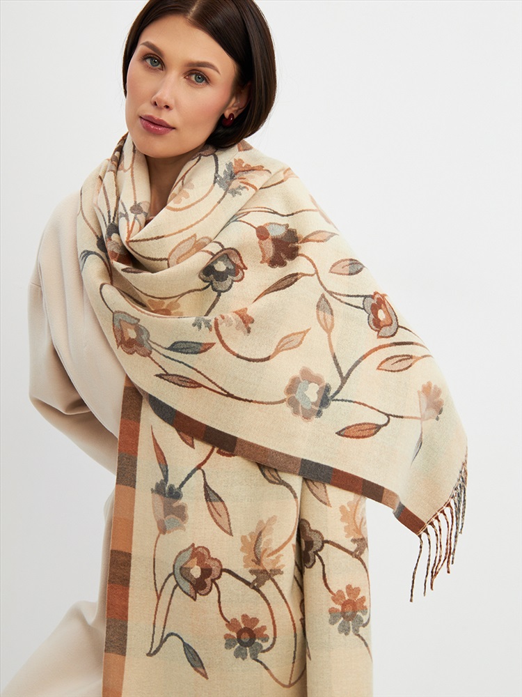 Цвет: Бежевый Состав: 55% вискоза, 25% кашемир, 20% шерсть Состав: Вискоза, Шерсть, Кашемир Размер: 70 x 180 см Принт: Цветочный, Орнаментальный Большой, мягкий, плотный и очень нежный палантин с рисунком. Края изделия украшены бахромой ручной работы. Машинная деликатная стирка. Комментарии к товару