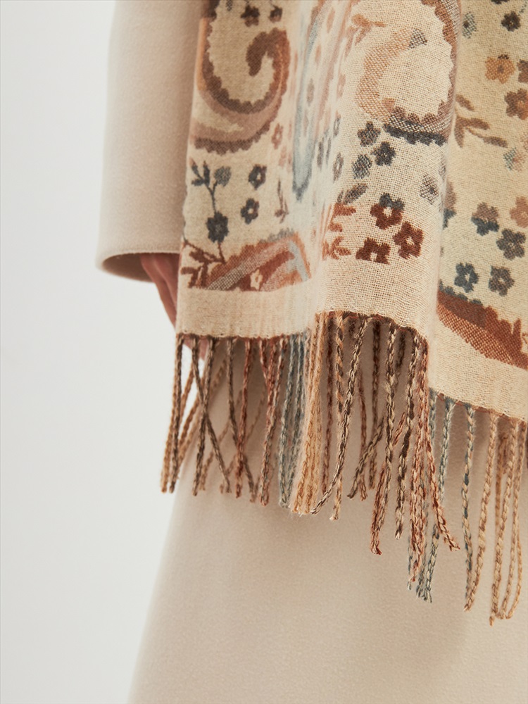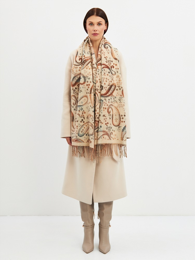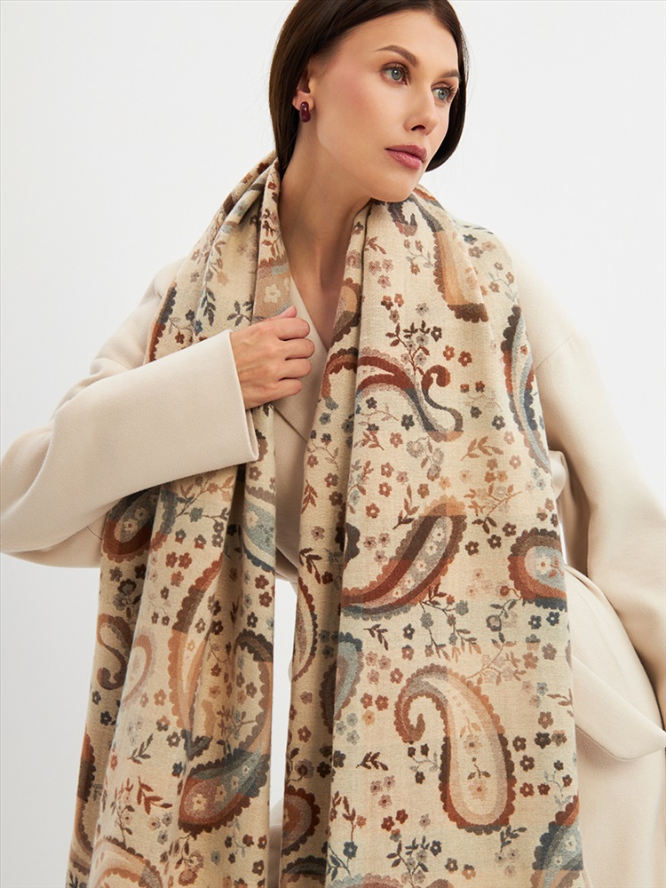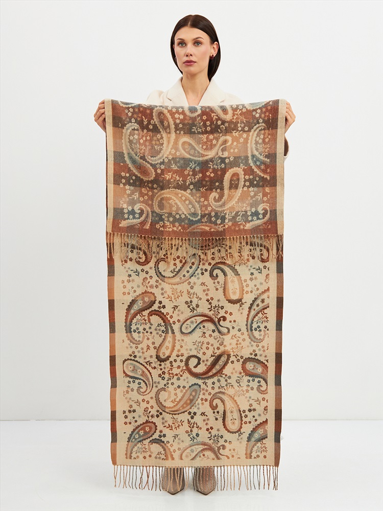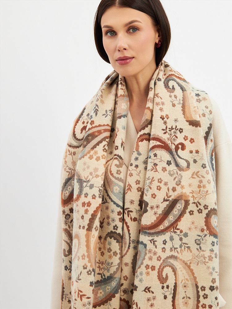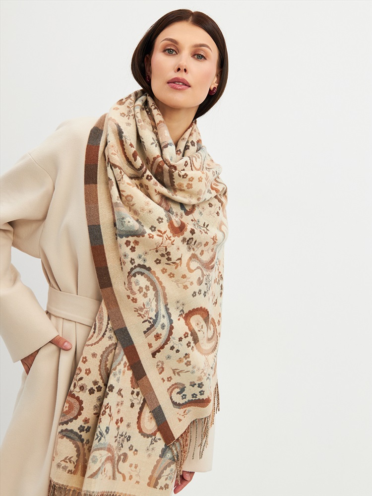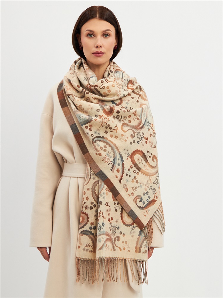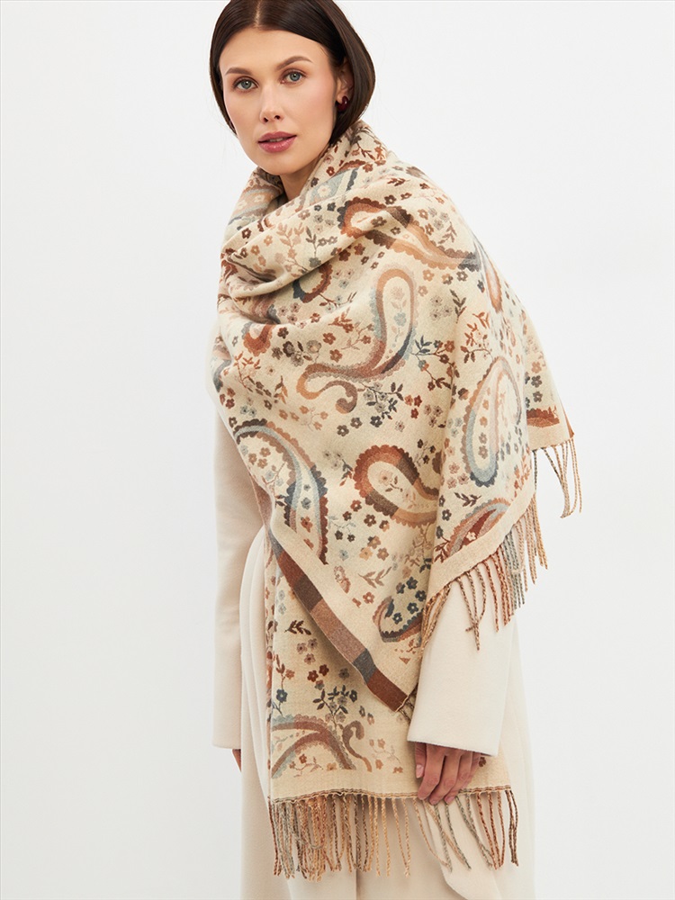 Большой, мягкий, тонкий и очень нежный палантин с рисунком. Края изделия украшены бахромой ручной работы. Машинная деликатная стирка.