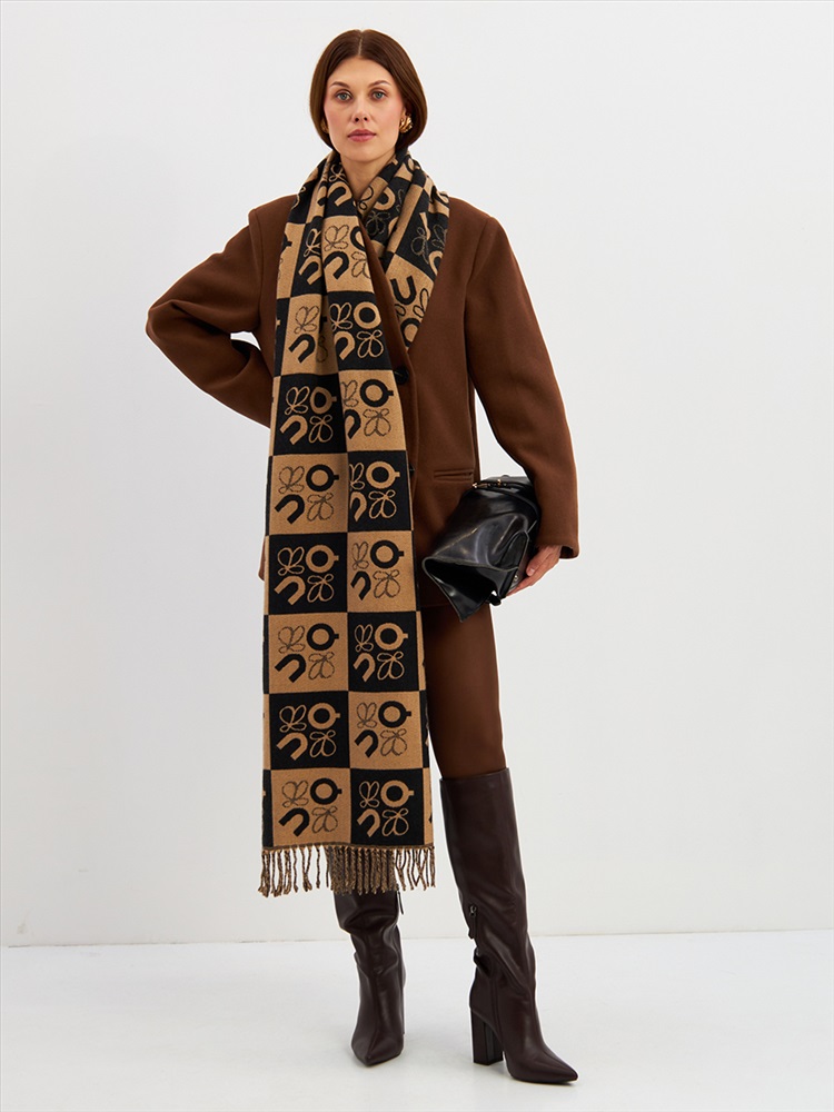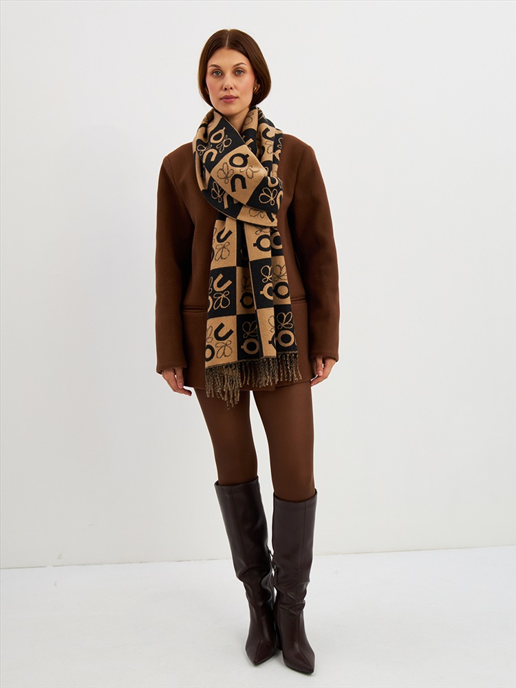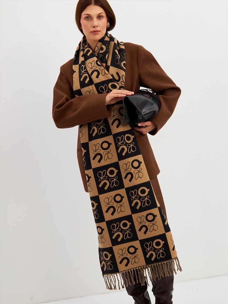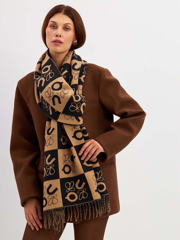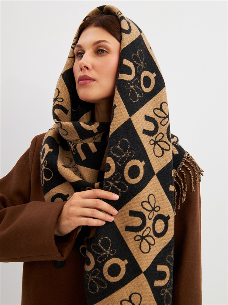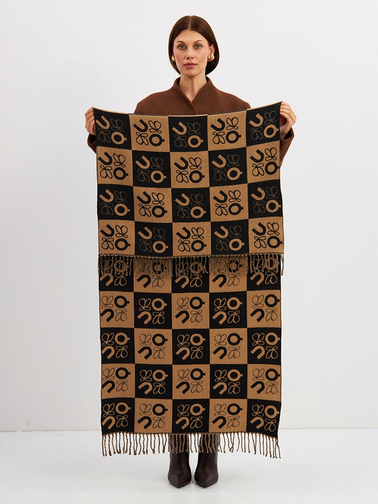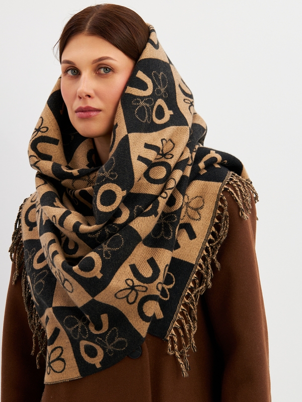 Большой, мягкий, тонкий и очень нежный палантин с рисунком. Края изделия украшены бахромой ручной работы. Машинная деликатная стирка.