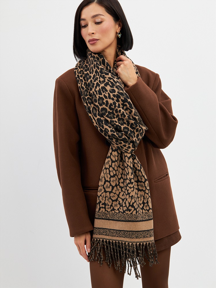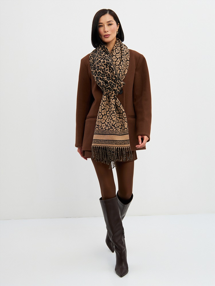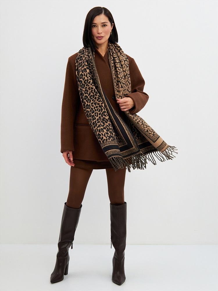 Цвет: Кофейный, Коричневый, Черный, Шоколад Состав: 45% модал, 35% вискоза, 20% шерсть Состав: Вискоза, Шерсть, Модал Размер: 70х180 см Принт: Животный (леопард), Орнаментальный Большой, мягкий, тонкий и очень нежный палантин с рисунком. Края изделия украшены бахромой ручной работы. Машинная деликатная стирка. Комментарии к товару