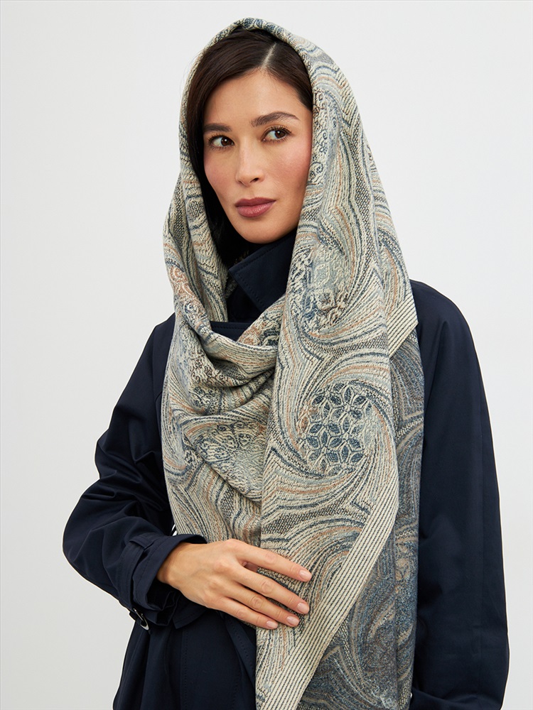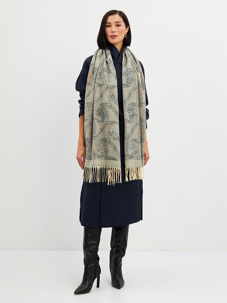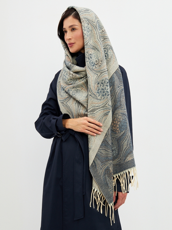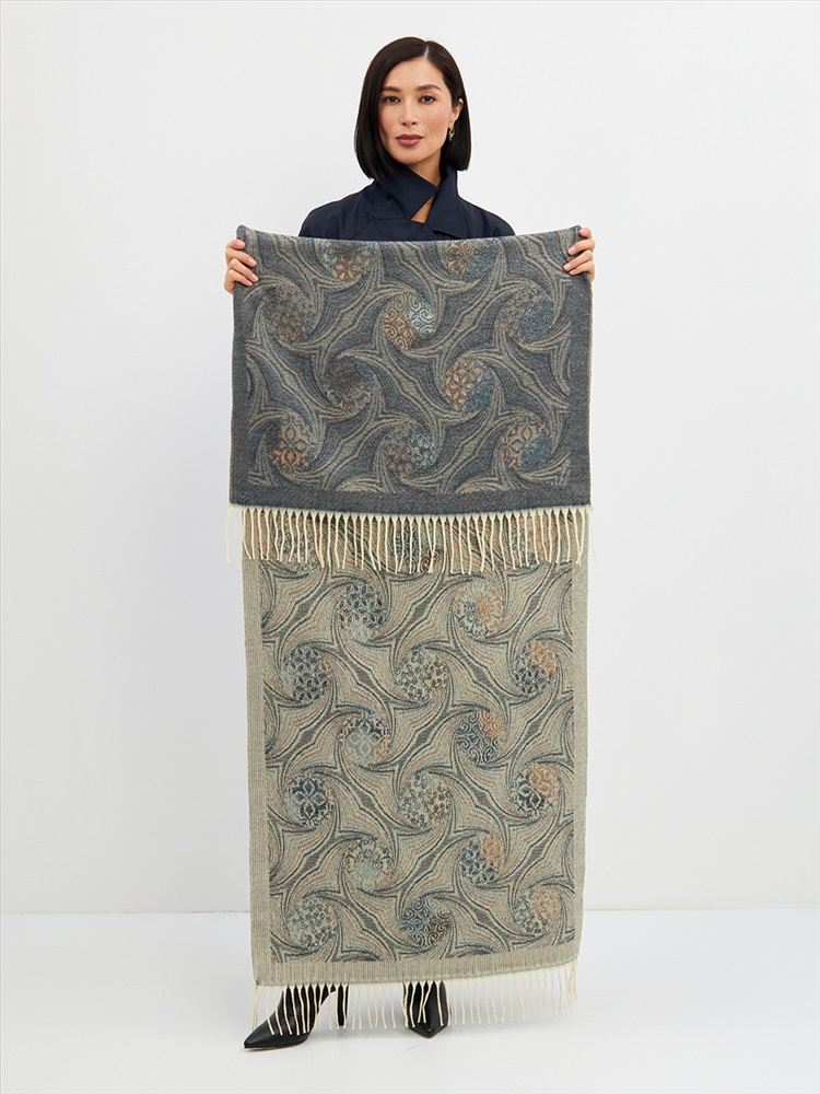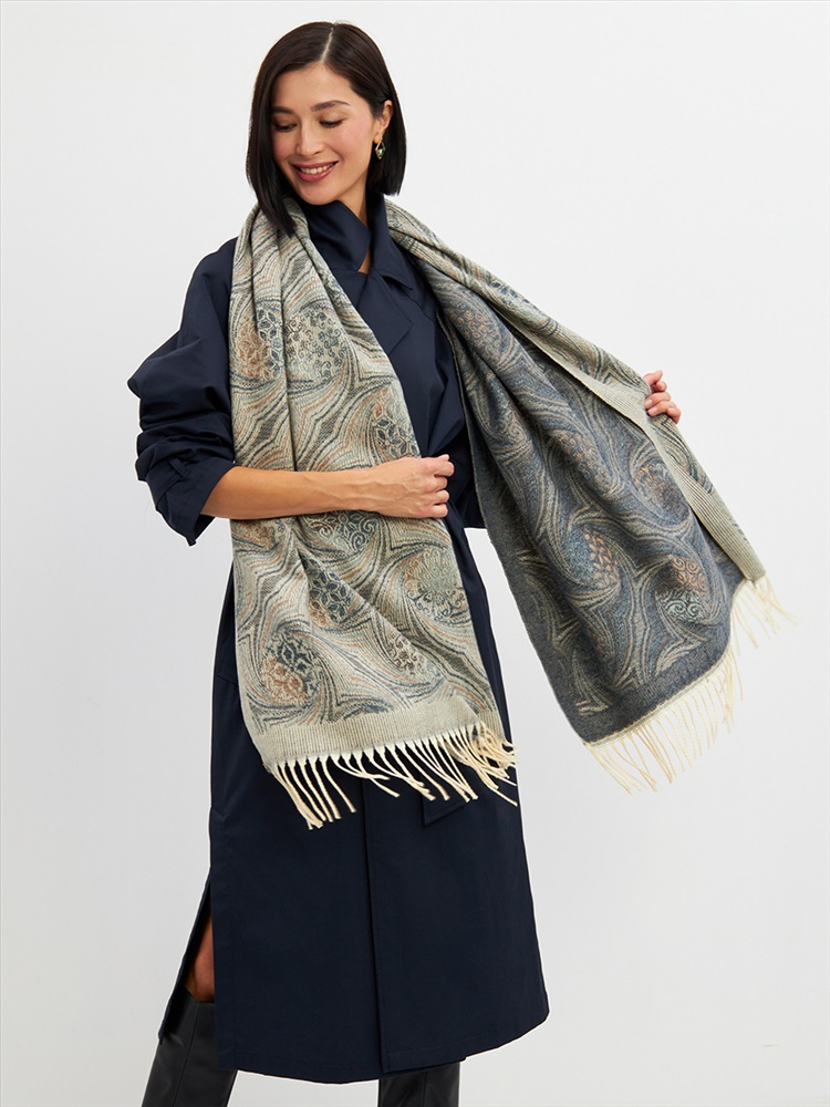 Большой, мягкий, тонкий и очень нежный палантин с рисунком. Края изделия украшены бахромой ручной работы. Машинная деликатная стирка.