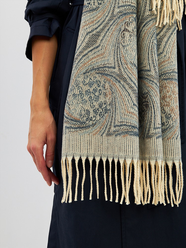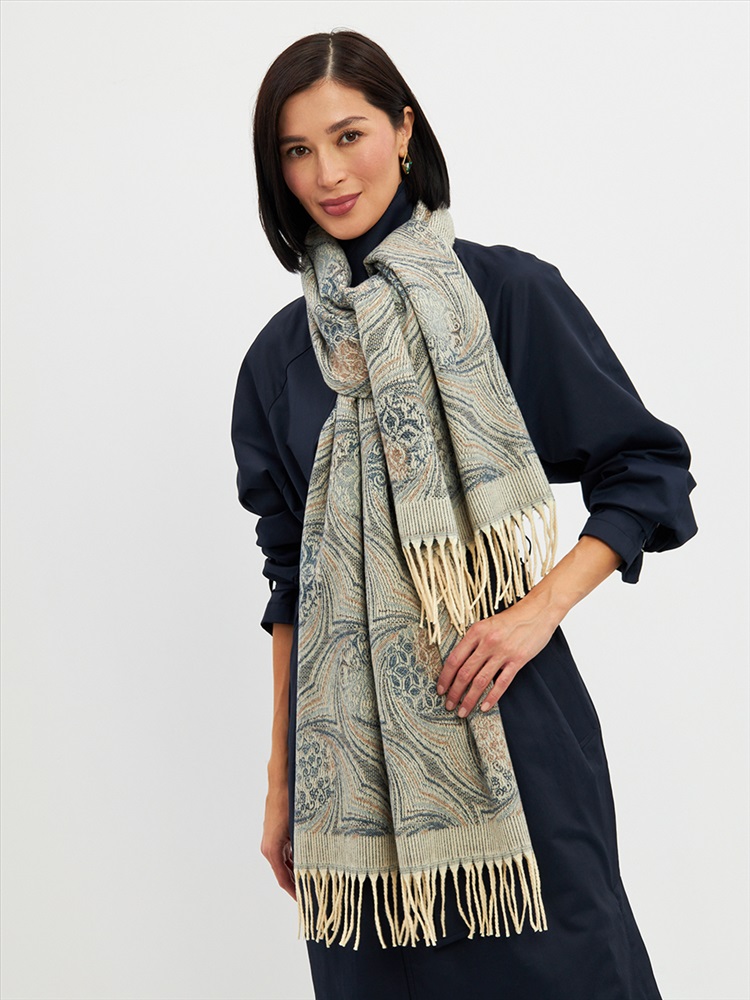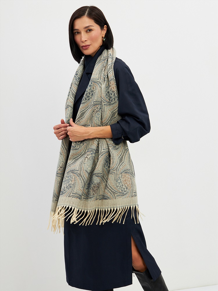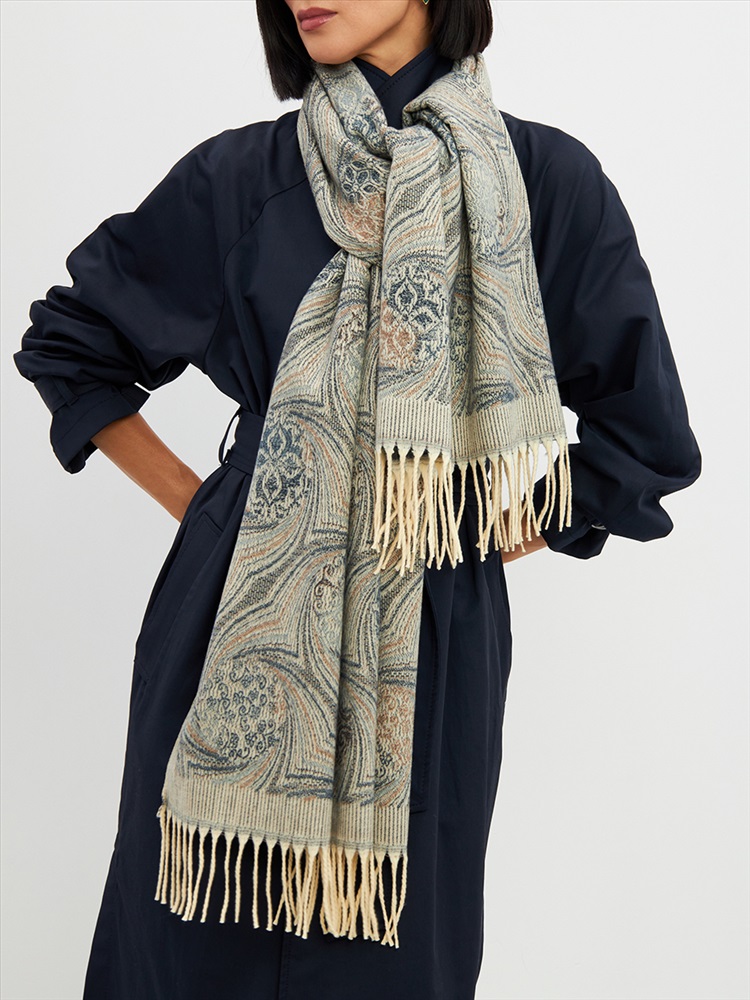 Большой, мягкий, тонкий и очень нежный палантин с рисунком. Края изделия украшены бахромой ручной работы. Машинная деликатная стирка.