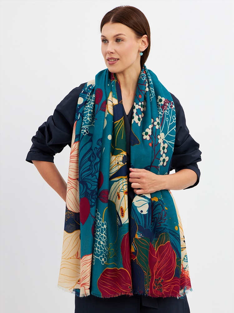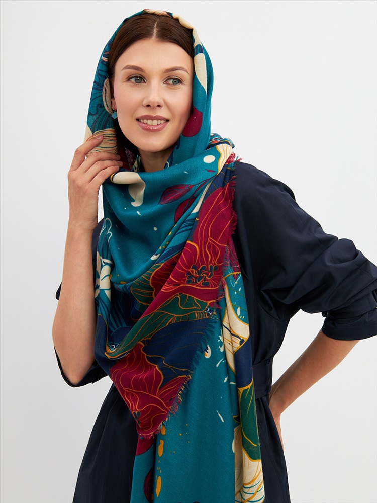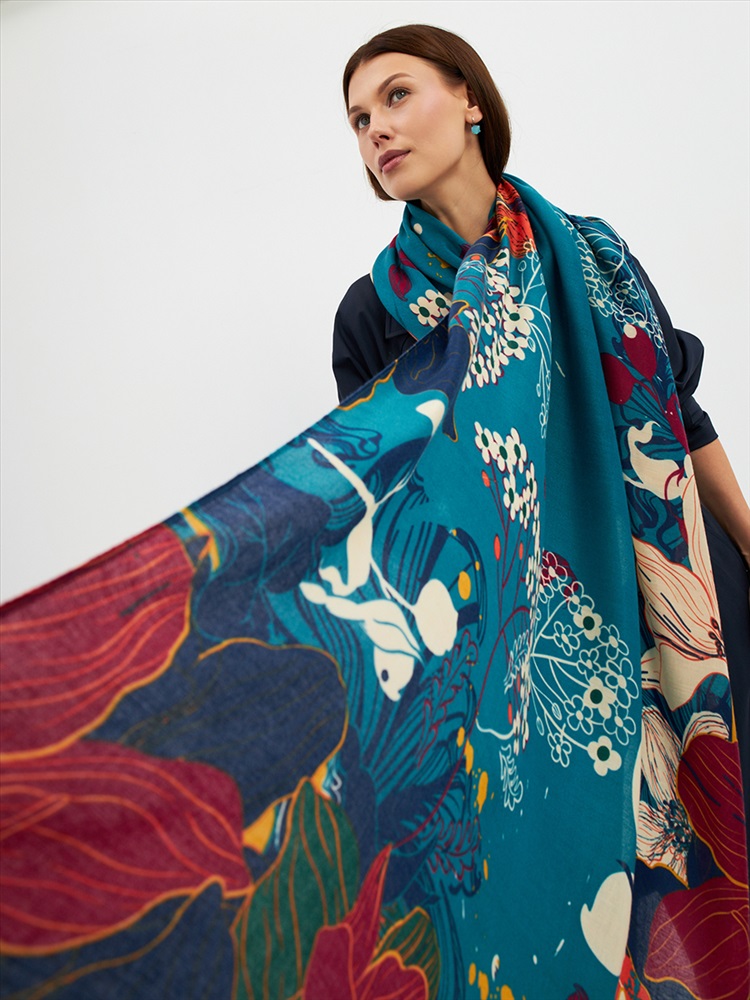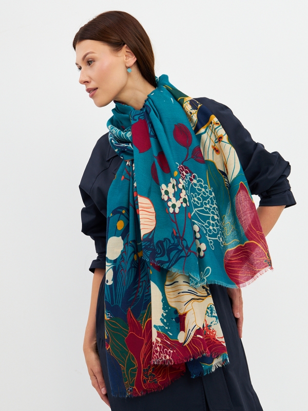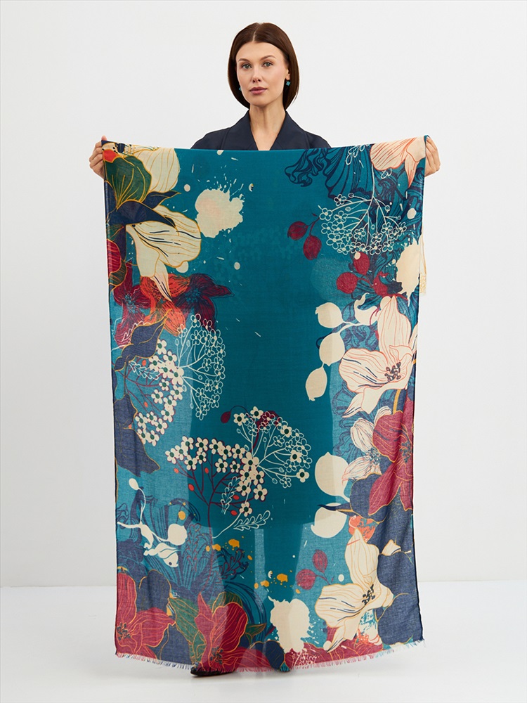 Большой, мягкий, тонкий и очень нежный палантин с рисунком. Края изделия украшены бахромой ручной работы. Машинная деликатная стирка.