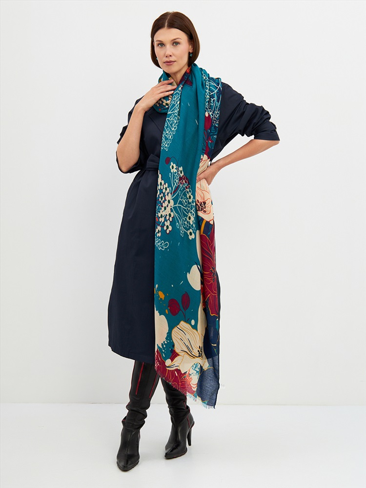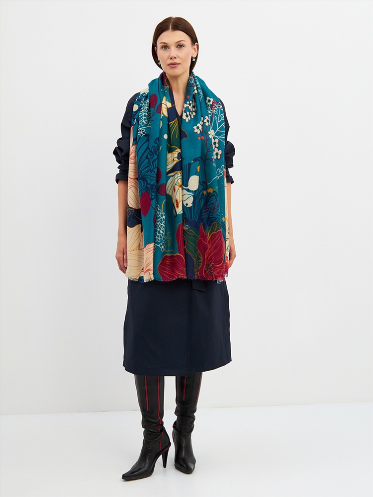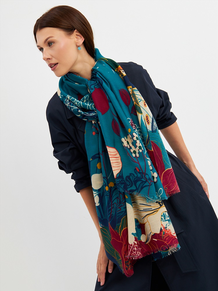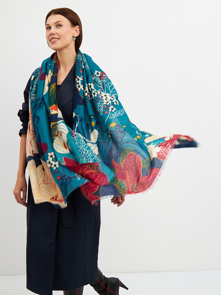 Большой, мягкий, тонкий и очень нежный палантин с рисунком. Края изделия украшены бахромой ручной работы. Машинная деликатная стирка.