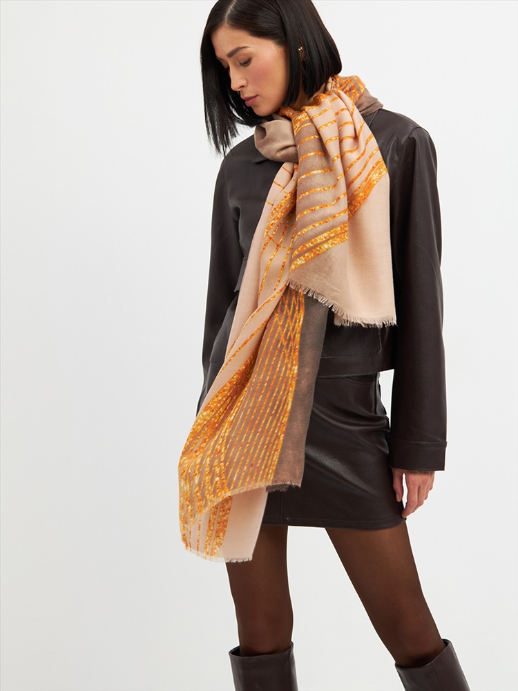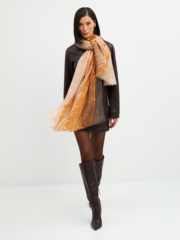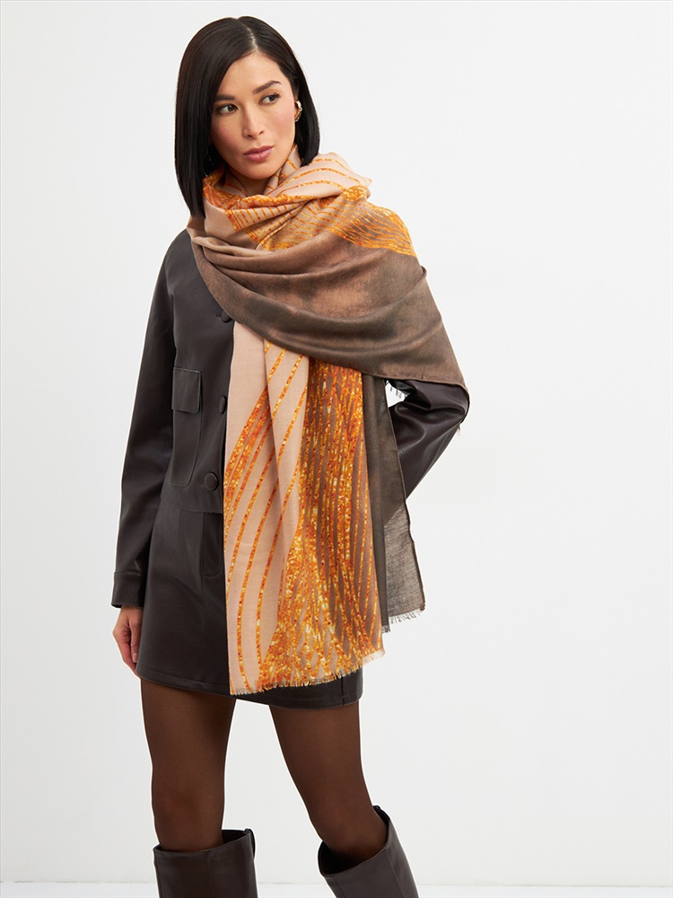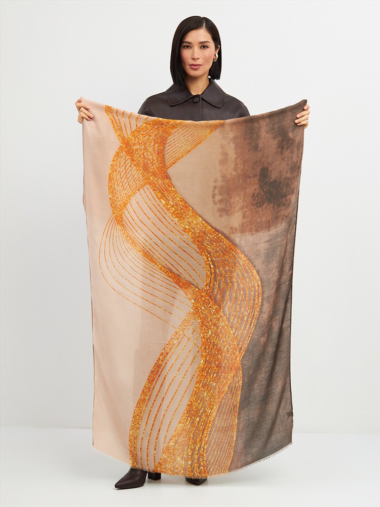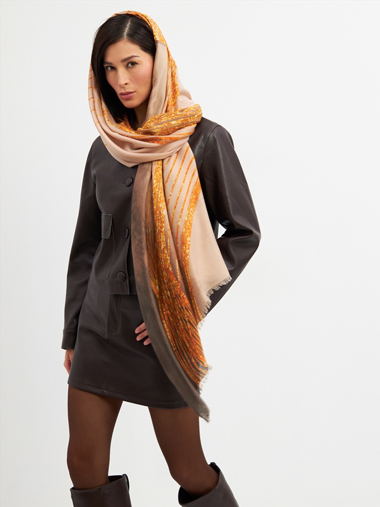 Большой, мягкий, тонкий и очень нежный двусторонний палантин с рисунком. Только ручная стирка.