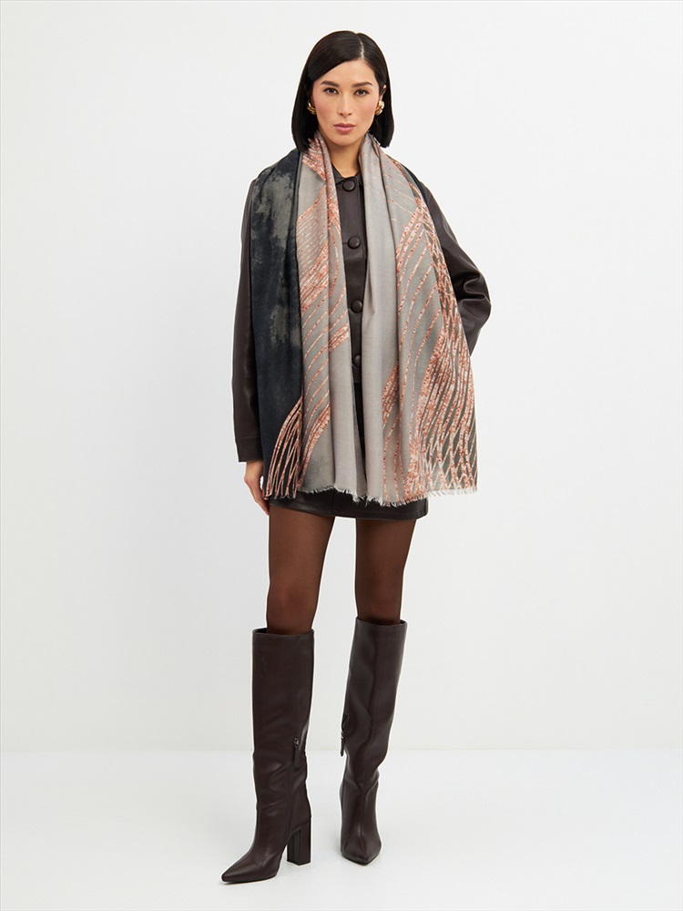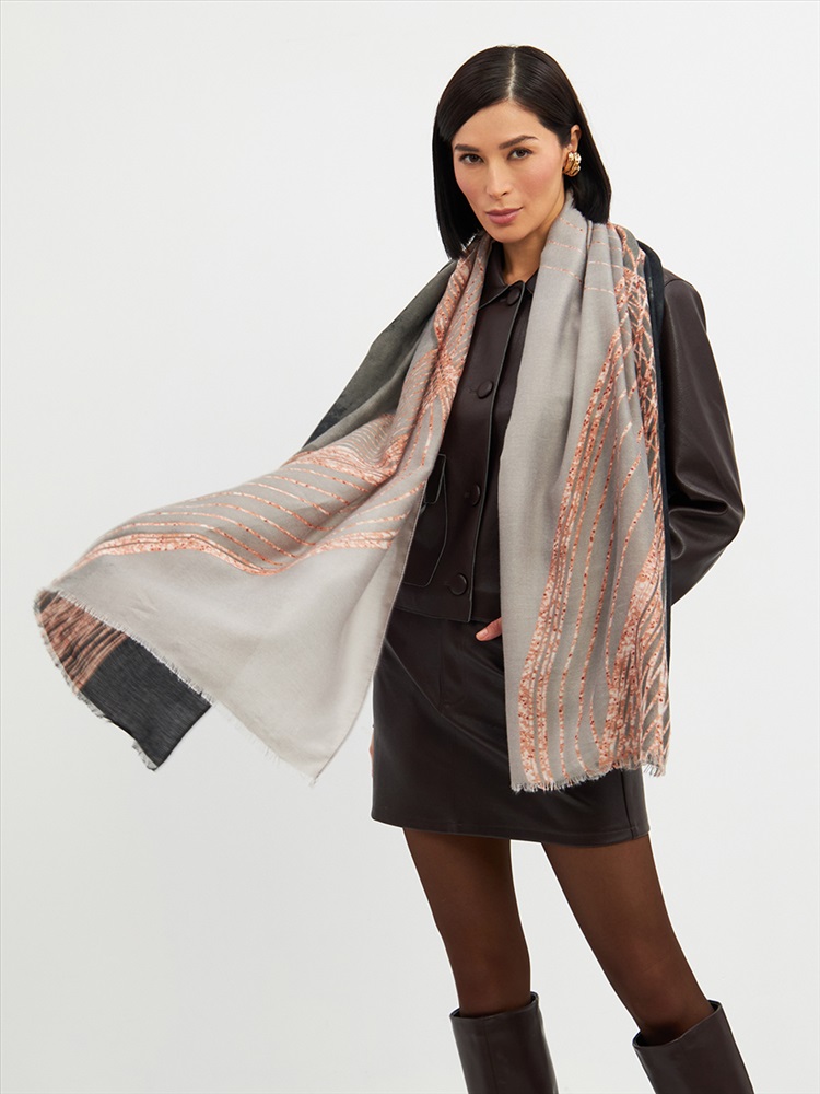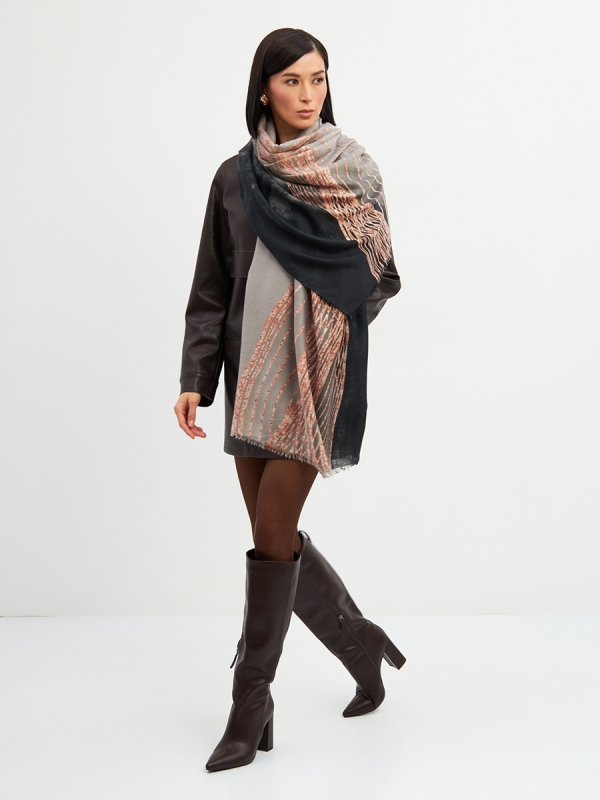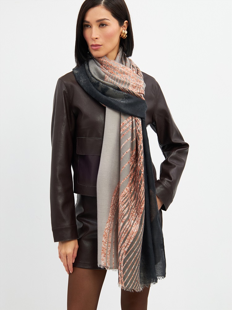 Большой, мягкий, тонкий и очень нежный двусторонний палантин с рисунком. Только ручная стирка.