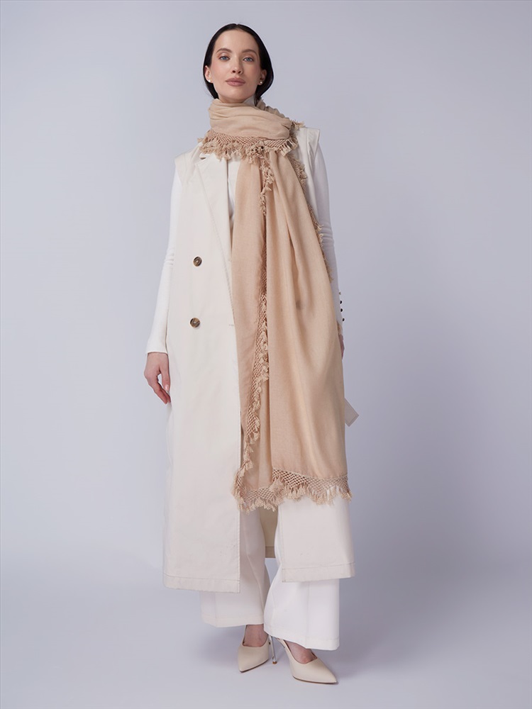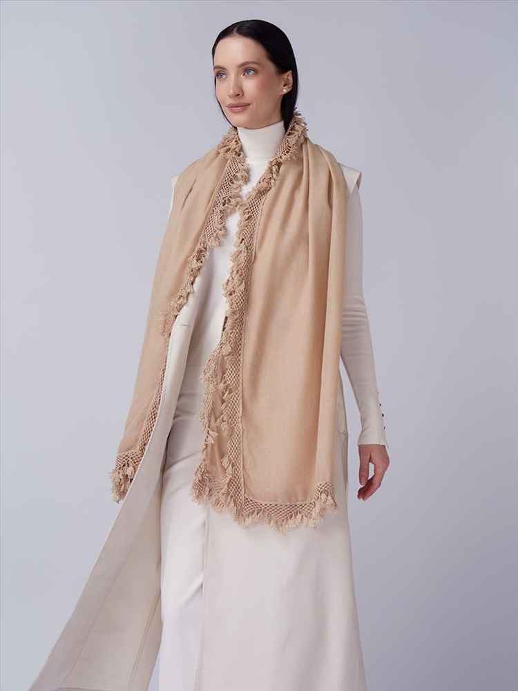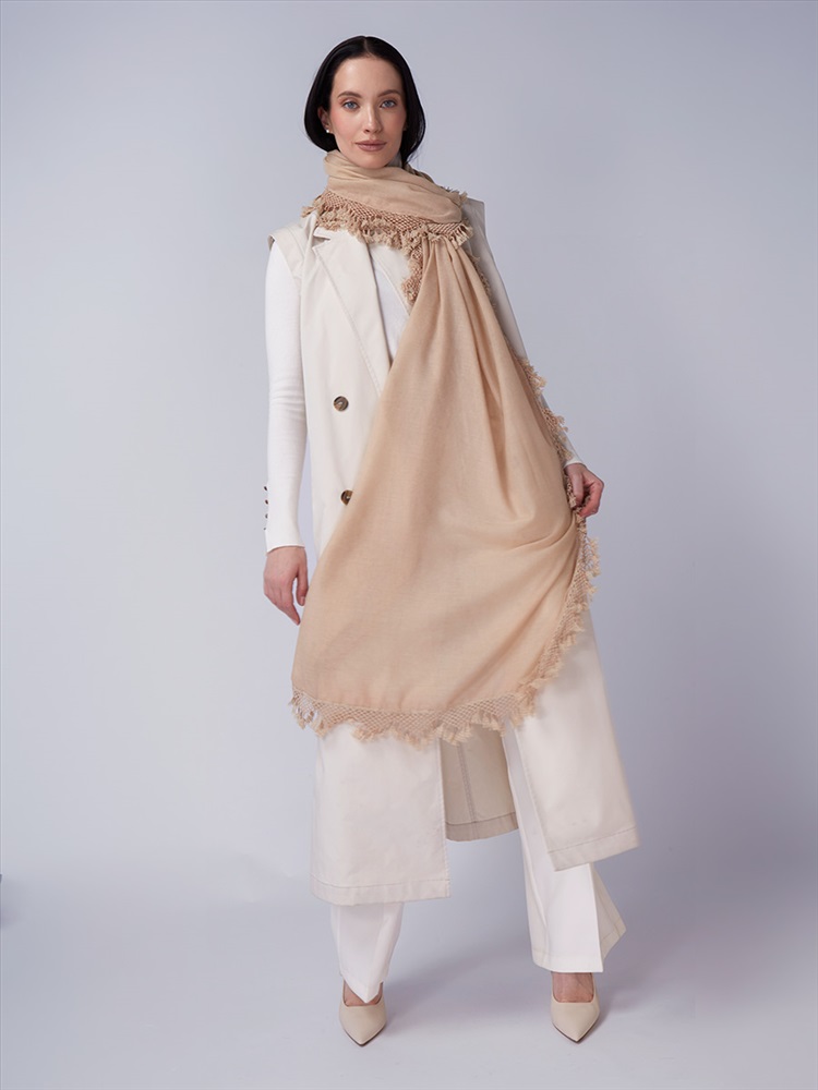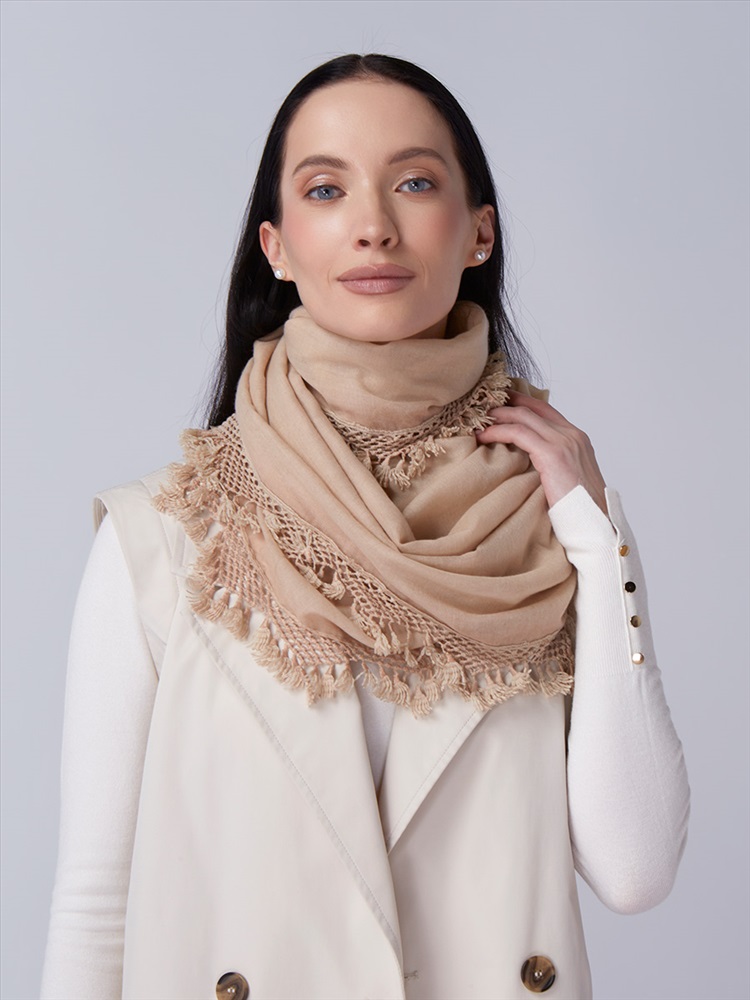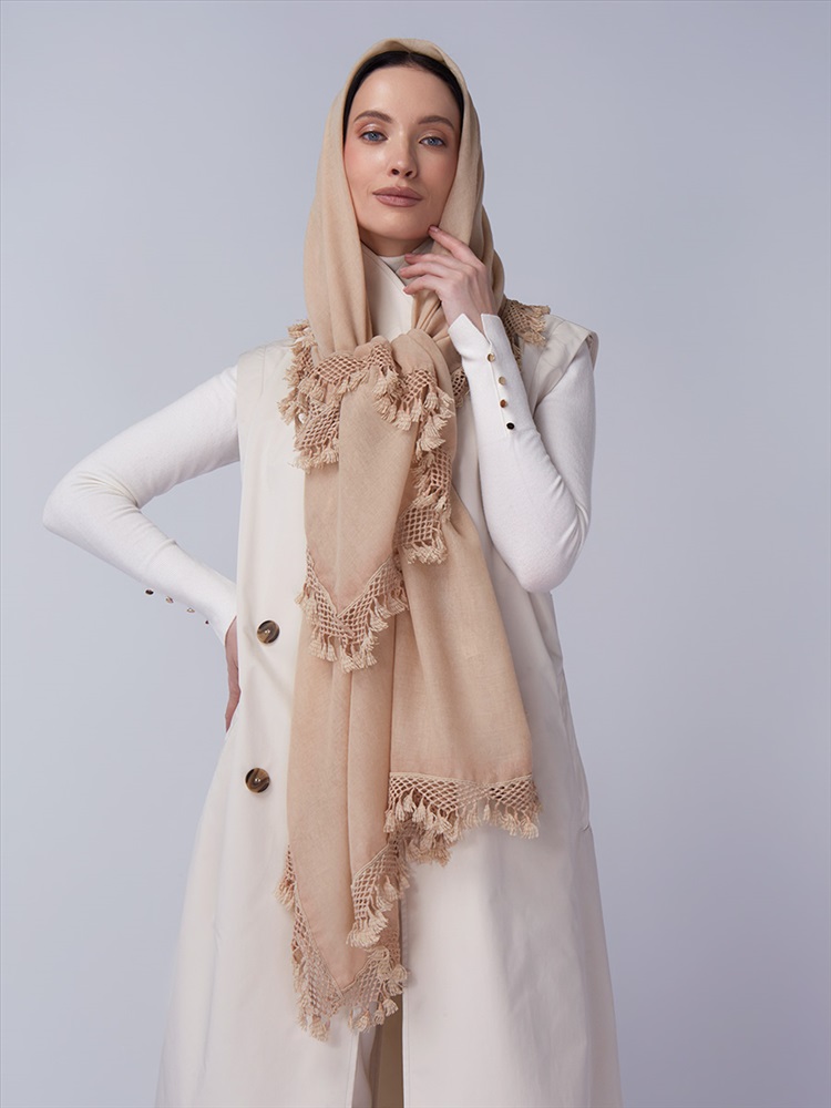 Цвет: Бежевый Состав: 55% полиэстер, 25% вискоза, 20% хлопок Состав: Вискоза, Полиэстер, Хлопок Размер: 70 x 180 см Принт: Однотонный Сезон: Осень, Весна Большой, мягкий, тонкий и очень нежный палантин с рисунком. Только ручная стирка. Комментарии к товару