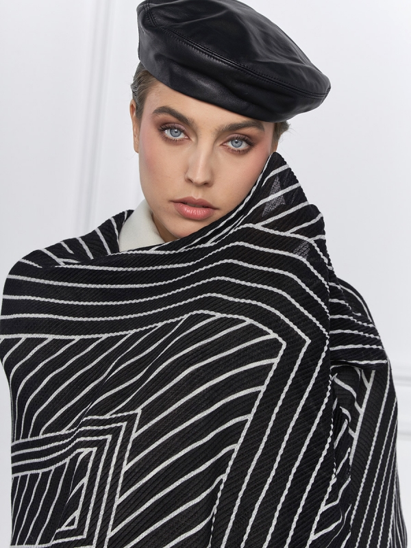 Цвет: Белый, Черный Состав: 55% вискоза, 45% полиэстер Состав: Вискоза, Полиэстер Размер: 65 х 170 см Принт: Полоска, Витраж Стиль: Повседневный, Деловой, Вечерний Большой, мягкий, тонкий и очень нежный палантин с рисунком. Ткань жатая. Только ручная стирка. Комментарии к товару
