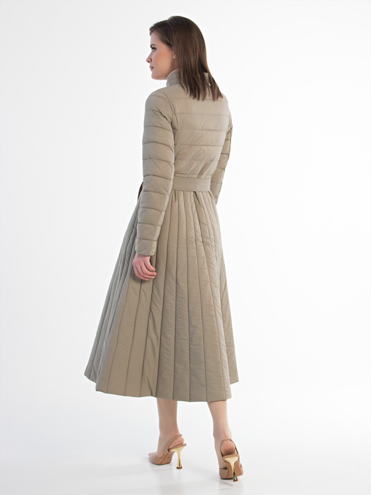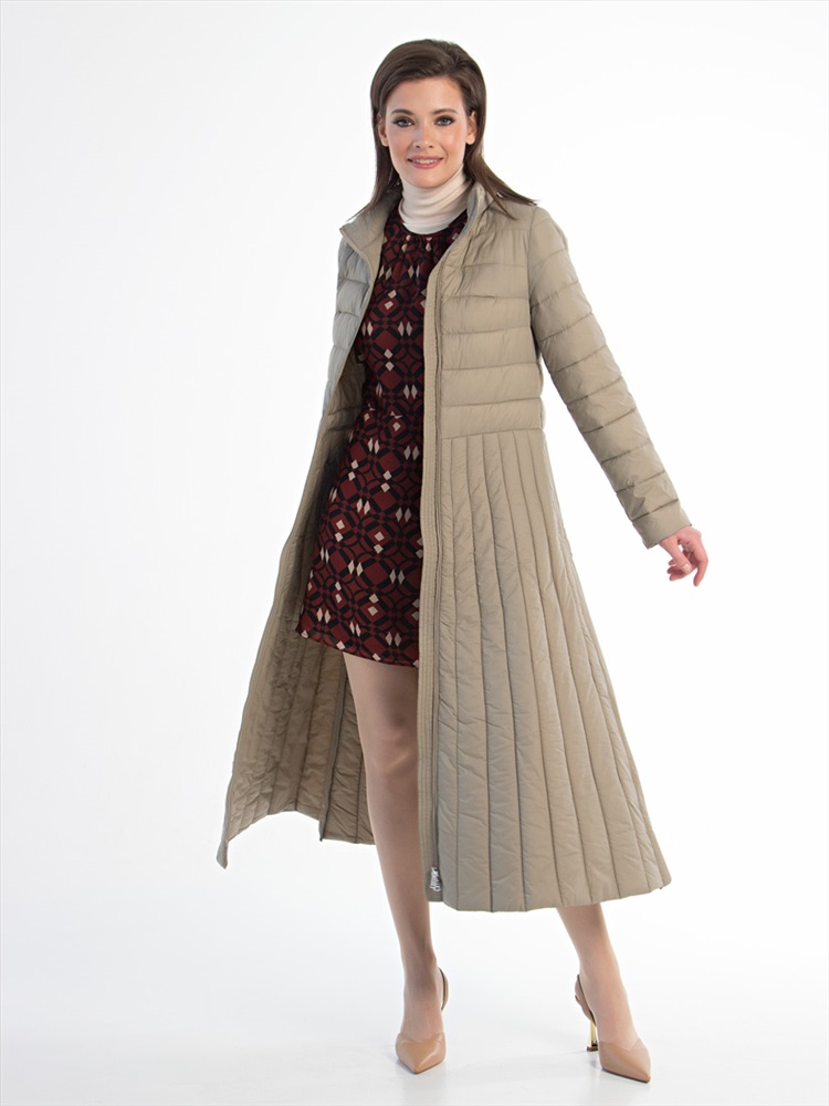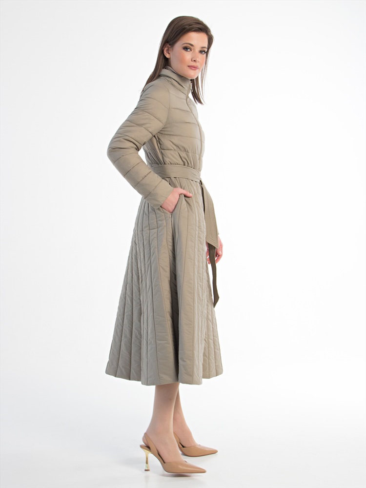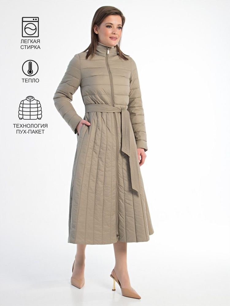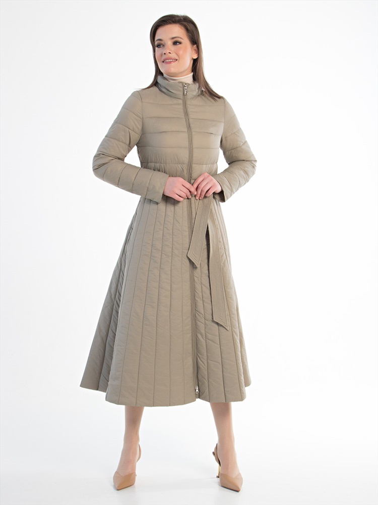 Длина: 124 см Стеганое женское пальто А-силуэта. Элегантная модель в классических цветах, длина-миди. Капюшон деликатно складывается в воротник. Центральная застежка на двухстороннюю молнию, удобно регулировать шаг. Отрезная талия подчеркивается поясом. Пропорции длины и объема идеальны, поэтому пальто подходит на рост от 155 см.