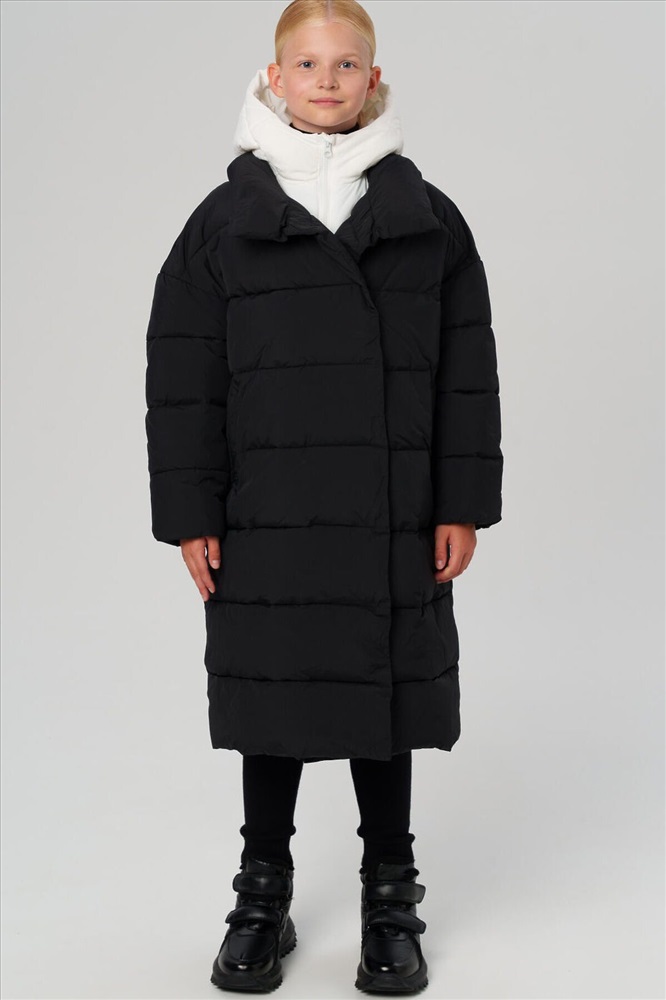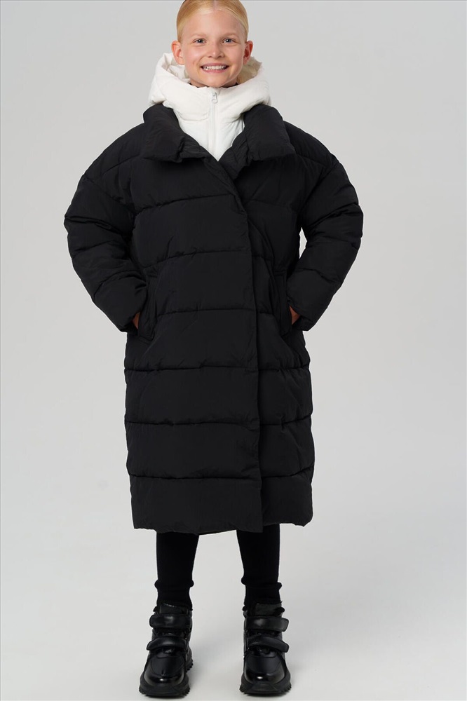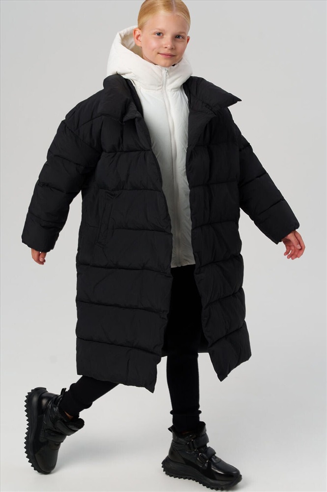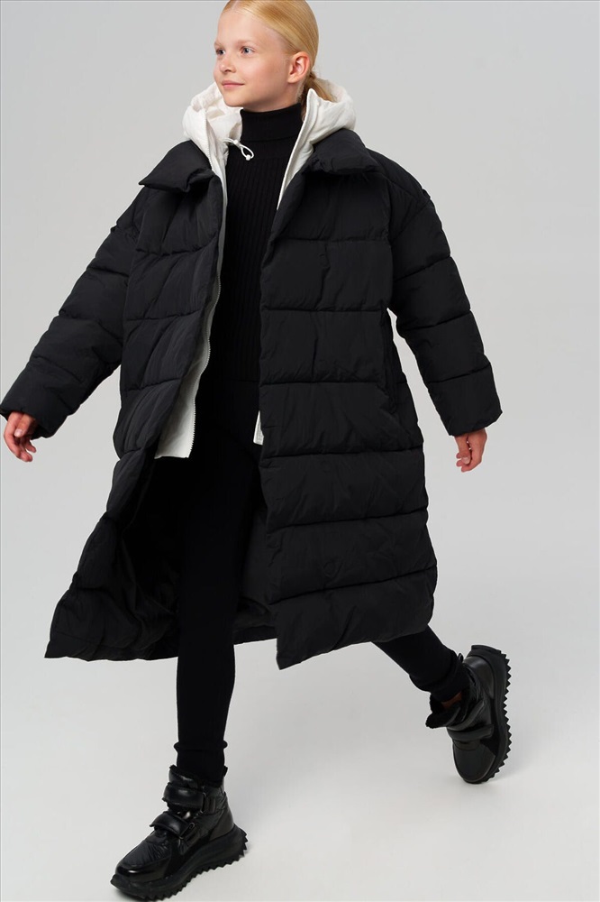 Классическое зимнее черное пальто с капюшоном для девочки подростка от PlayToday — тёплая, лёгкая и надёжная модель для холодной осени и зимы. Разработано для температур до –5°C и подходит для школы, прогулок и активных будней. Пальто защищает от ветра и лёгкой влаги, сохраняя при этом аккуратный и стильный внешний вид. Преимущества модели: + температурный режим до –5°C (информация на этикетке не корректна, сверяйтесь с тепловым режимом в описании) + гладкая подкладка + непромокаемый и ветрозащитный верх + два удобных кармана без застежек + внутренний карман на липучке + несъёмный капюшон с утяжкой-стопперами + манжеты на резинке + прямой крой + универсальный черный цвет с белой вставкой + легкий уход Это зимнее подростковое пальто для девочек обеспечивает надёжную теплоизоляцию и комфорт в морозную погоду. Благодаря продуманной конструкции и лёгкому утеплителю, ребёнку будет тепло, но не жарко. Универсальное детское пальто для школы хорошо сидит на фигуре, не сковывает движений и легко надевается поверх школьного костюма, платья или свитера. Функциональные боковые карманы надёжно хранят нужные мелочи, а капюшон с регулировкой защищает голову от ветра и осадков. Такое стильное школьное пальто для подростков станет удобной базой для зимнего гардероба — практичное, современное и тёплое. Совет по стилю: сочетайте это утепленное удобное пальто для школьницы с утеплёнными брюками, варежками и вязаной шапкой PlayToday — получится гармоничный и уютный образ для школы и прогулок. Модель представлена на рост 122–170 см — идеально подходит для девочек от 7 до 16 лет. Модное зимнее черное пальто в школу для девочки от PlayToday — сочетание тепла, функциональности и актуального дизайна. Универсальная вещь, которая защитит от непогоды и подчеркнёт стиль даже в самые холодные дни.