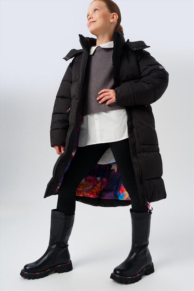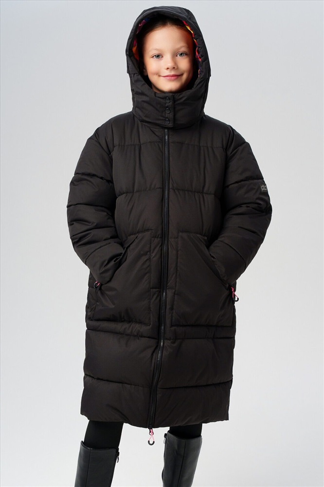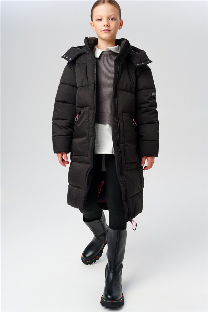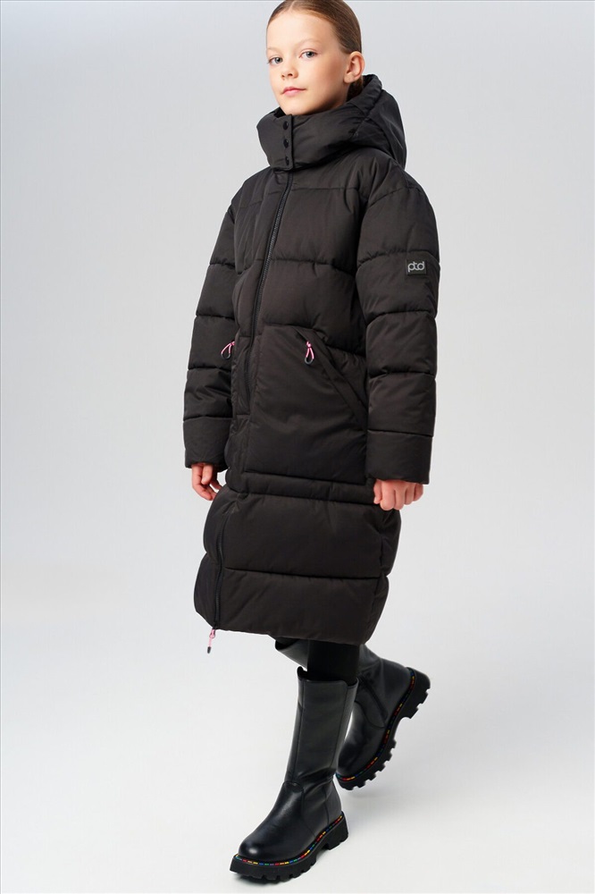 ID товара: 1189448 Состав: Верх- 100% Полиэстер; Подкладка- тафета; Наполнитель- Искусственный пух 350 г/м2 Сезон: Осень/Зима Длина: Удлиненная Фасон: Прямой Рукав: длинные Вид застежки: Молния Тип карманов: Накладные Декоративные элементы: С капюшоном Утеплитель: с утеплителем, Искусственный пух 350 г/м2 Стиль: повседневный Реком. темп. режим: до -20ºС Страна бренда: Германия Страна производства: Китай Классическое черное зимнее пальто для девочки подростка от PlayToday — тёплая, надёжная и стильная модель для школьных будней и зимних прогулок. Подходит для температур до –20°C, отлично держит тепло и сохраняет аккуратный внешний вид даже при ежедневной носке. Преимущества модели: + температурный режим до –20°C (информация на этикетке не корректна, сверяйтесь с тепловым режимом в описании) + гладкая подкладка + ветрозащитная и непромокаемая ткань верха + два внешних кармана на молнии + внутренний карман на липучке + несъёмный капюшон с утяжкой стопперами + прямой крой + универсальный черный цвет Это тёплое подростковое пальто для школы продумано до мелочей: оно сохраняет тепло, защищает от ветра и снега, при этом оставаясь удобным и аккуратным. Внутренняя гладкая подкладка дарит ощущение уюта даже в морозный день, а внешний слой из плотной ткани защищает от осадков и продувания. Прямой крой не сковывает движений — в таком зимнем детском пальто для девочек удобно ходить в школу, гулять, играть на улице и активно проводить время. Карманы на молниях позволят безопасно хранить ключи, телефон и другие важные мелочи, а внутренний карман пригодится для любимых перчаток от PlayToday. Несъёмный капюшон с утяжкой надёжно укрывает голову и защищает от ветра и снега. Лаконичный силуэт и классический цвет делают модель универсальной: такое стильное школьное пальто для подростков легко комбинируется с школьной формой, утеплёнными брюками, платьями и повседневной одеждой. Совет по стилю: сочетайте это утепленное черное пальто с вязаной шапкой, варежками и тёплой обувью из коллекции PlayToday — получится комфортный и стильный образ для зимы, в котором будет тепло и уютно каждый день. Модель представлена на рост 122–170 см — идеально подойдёт для девочек от 7 до 16 лет. Модное зимнее пальто в школу для девочки от PlayToday — надёжная защита от холода, свобода движений и сдержанный стиль. Универсальная вещь, которая станет любимой в зимнем гардеробе! Комментарии к товару