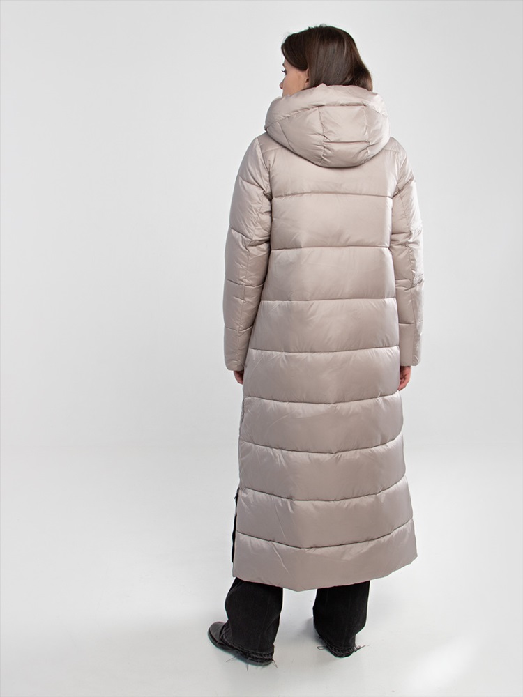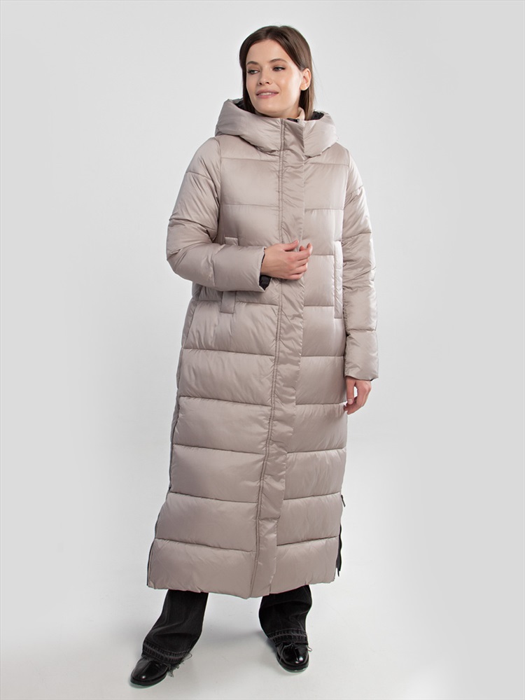 Длина: 125см Длинный пуховик из осенне-зимней коллекции станет идеальным вариантом верхней одежды для холодной ветреной погоды. Стеганое пальто изотовлено из непродуваемого нейлона с гладкой сатиновой поверхностью. Изделие утеплено легким био-пухом. За дополнительный комфорт отвечают воротник-стойка, объемный капюшон, внутренние манжеты рукавов. Для удобства черные боковые замки, которые идеально сочетаются с черной подкладкой. Карманы на магнитных кнопках.