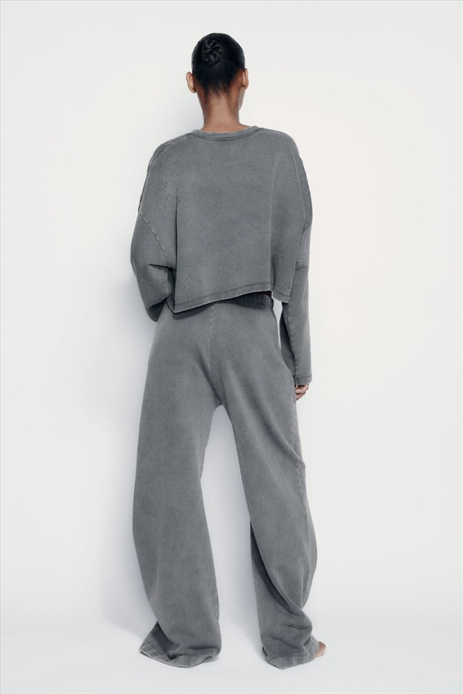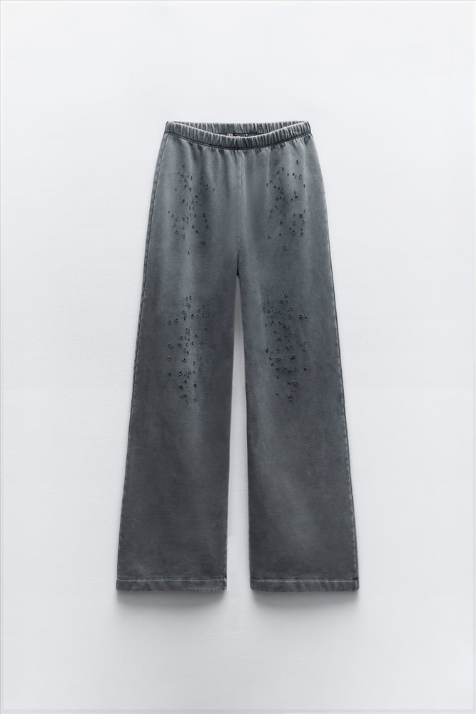 PANTALÓN FELPA EFECTO LAVADO ROTOS