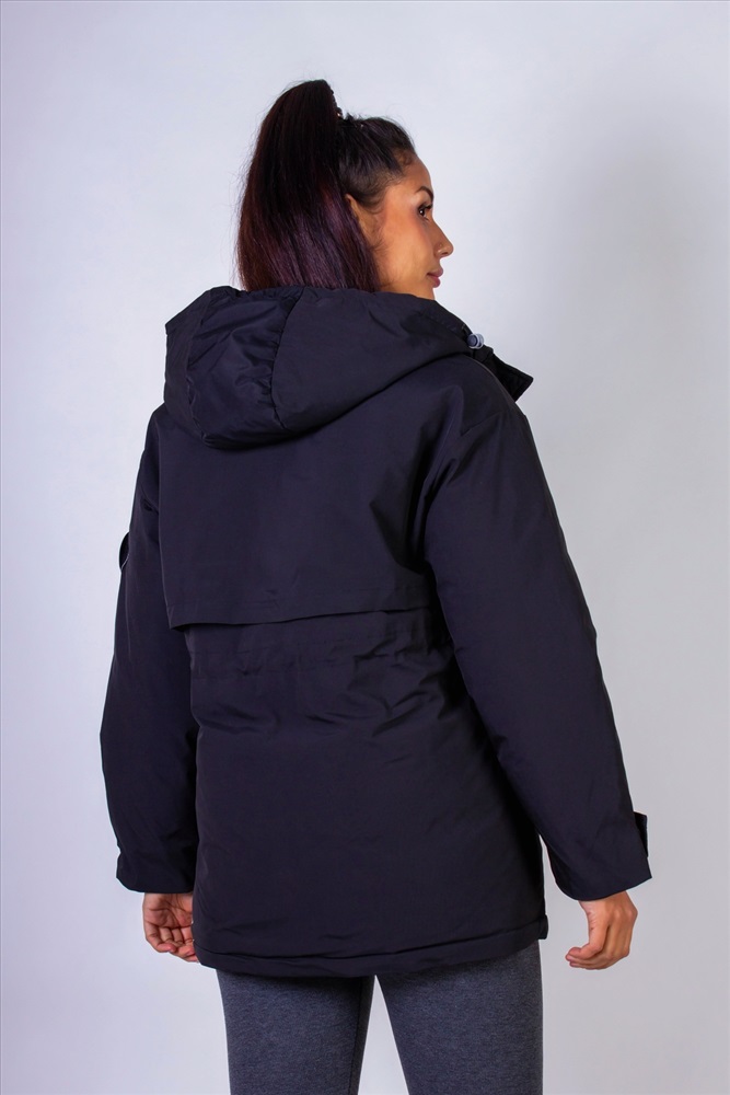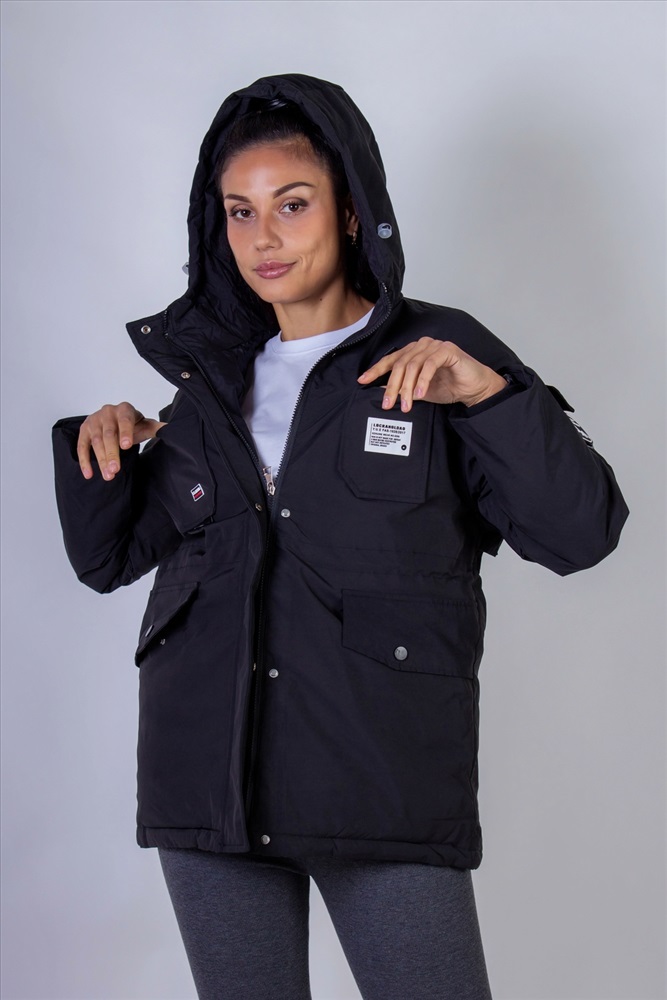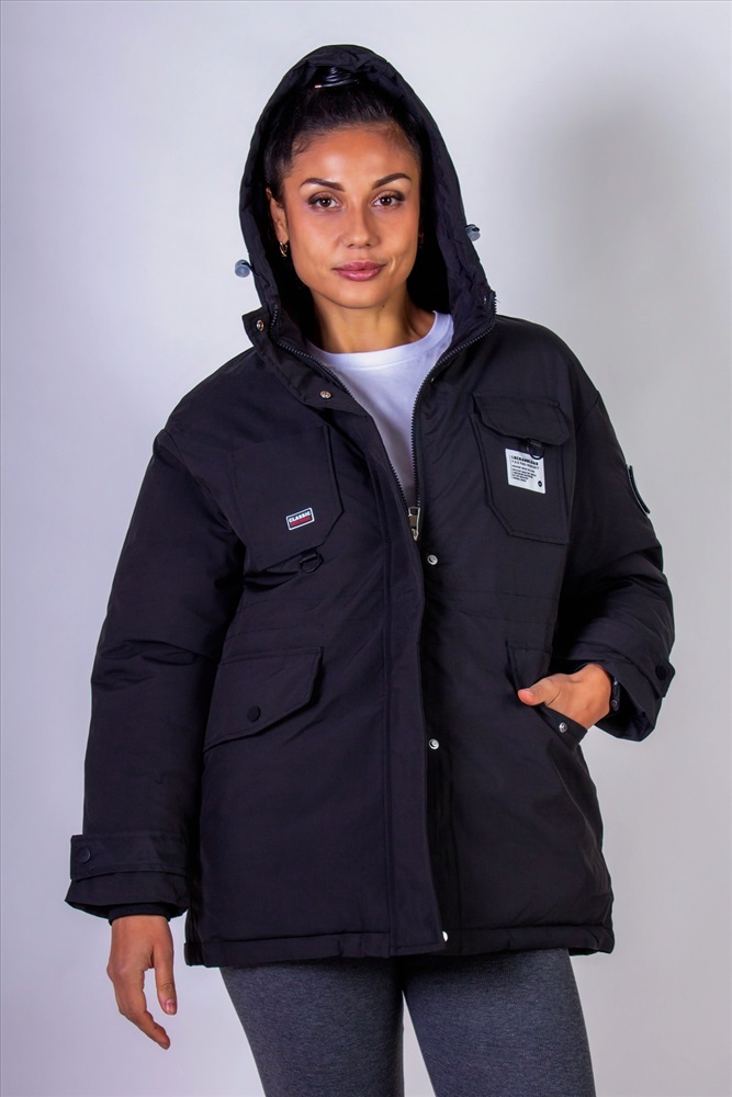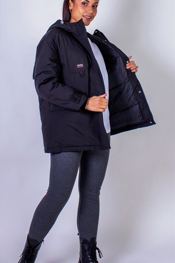 Застежка: кнопка | молния Стильная и практичная парка черного цвета, созданная специально для использования в демисезонный период или теплой зимы. Эта универсальная куртка станет незаменимым атрибутом вашего гардероба и обеспечит максимальный комфорт в холодное время года. Парка выполнена с добавлением холофайбера, который обладает отличными теплоизоляционными свойствами, куртка легкая и теплая. Ее классический черный цвет делает изделие универсальным и легким в сочетании с различными стилями одежды, от повседневного до спортивного. Удобный капюшон с фиксаторами позволяет регулировать его объем, защищая от пронизывающего ветра или холодного дождя. Молния с планкой на кнопках обеспечивает надежную защиту от непогоды. На талии внутри предусмотрена резинка с фиксаторами, которая позволяет подчеркивать силуэт, создавая более аккуратный и привлекательный вид. Рукава парки оформлены трикотажными манжетами, которые плотно облегают запястье, не позволяя холоду проникать внутрь. Также стоит отметить интересную нашивку на липучке на рукавах, которая придает интересный акцент и может быть снята или заменена по желанию, что позволяет менять стиль в зависимости от настроения. Парка отличается продуманным дизайном, включающим два верхних кармана с нашивками для удобного хранения мелочей, а также два передних больших кармана с клапанами на кнопках, которые позволят вам удобно и безопасно носить с собой необходимое от телефона до кошелька. Эта парка станет идеальным выбором для тех, кто ценит стиль и комфорт одновременно. Она прекрасно подойдет как для городских прогулок, школы, работы, так и для активного отдыха на природе. Не упустите возможность дополнить свой гардероб этой функциональной и актуальной вещью. Рост модели на фото: 175 см, размер: 46-48. На ней представлена куртка в 46 размере