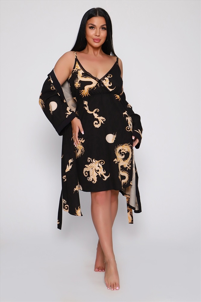 Состав: хлопок 100% Модель: Пеньюар Драконы 729 Тип товара: пеньюар с сорочкой Материал: кулирка | кулирка Бренд: Руся Длина: средняя длина Карман: без карманов Назначение: для дома НДС: 5% Отделка: с кружевом Рисунок: разное Рукав: без рукава | длинный рукав Сезонность: лето | осень | весна | зима Силуэт: свободный Скидка: любая Стиль: домашний Воротник: воротник планка Застежка: на запах Женский пеньюар и сорочка Драконы Изготовлены из легкого, приятного на ощупь натурального хлопка. Элегантный домашний наряд включает халат на запах и легкую ночную сорочку. Халат свободного кроя с поясом, рукава 3/4, длина до колена идеально для комфортных и стильных будней. Сорочка на тонких бретелях создаст романтичный образ. Широкий размерный ряд. Наслаждайтесь уютом и стилем дома! Таблица размеров и веса