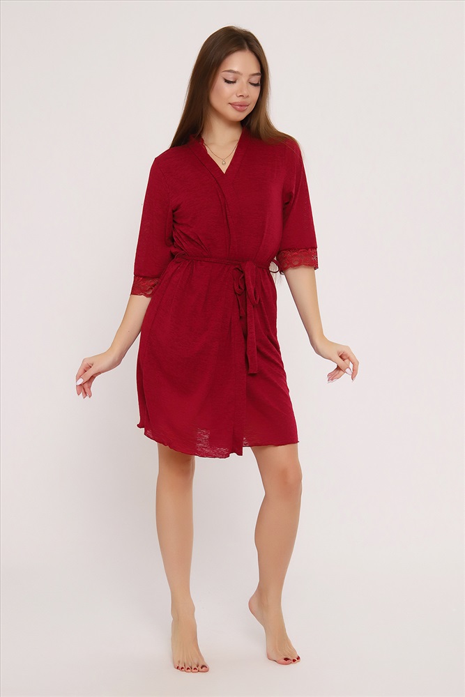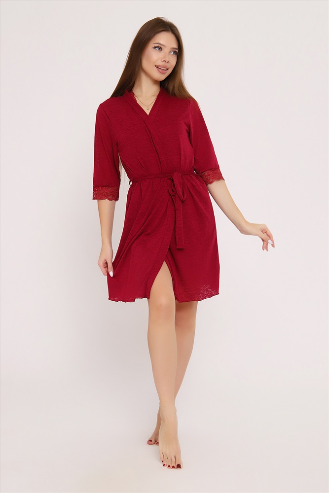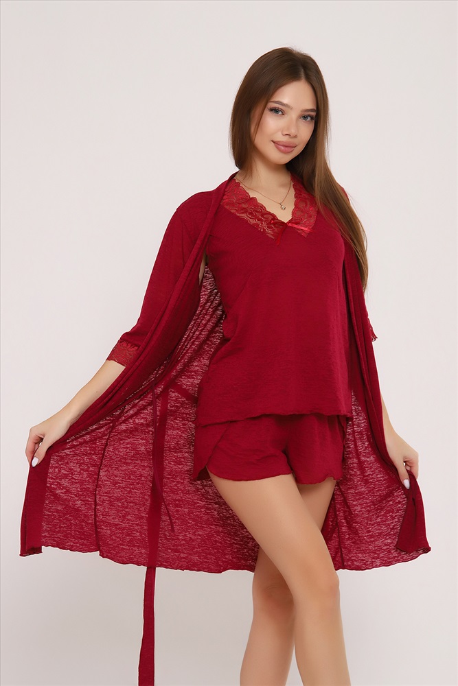 Застежка: на запах Женский кружевной комплект - именно то, что нужно для создания нежного и сексуального образа. Он состоит из пеньюара на запах и тройки из майки с шортами. В комплекте халат, который можно надеть поверх комплекта для создания дополнительного комфорта. Боковые швы шорт выполнены в нахлест, создавая по бокам разрезы, и обработаны окантовкой. Идеальный вариант для отдыха и сна. Материал изготовления - ДЕВОРЕ, который обладает дышащими свойствами и позволяет телу дышать, не вызывая дискомфорта.