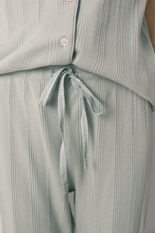 Pijama camisero algodón canalé verde
