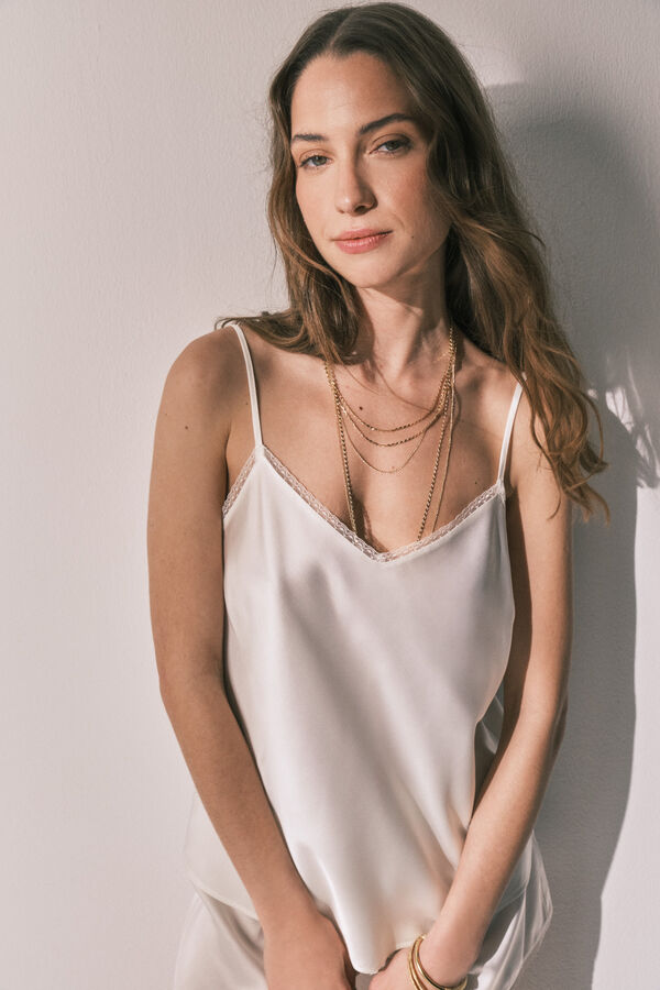 - Top con tirantes regulables y detalles de encaje en escote y pecho.