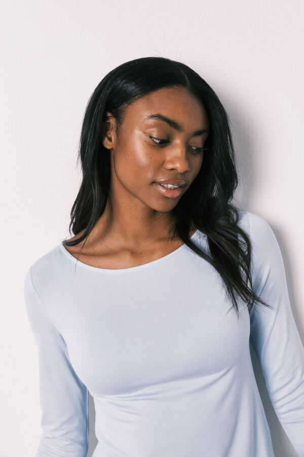 - Camiseta con escote barco y detalle de abertura en la espalda.