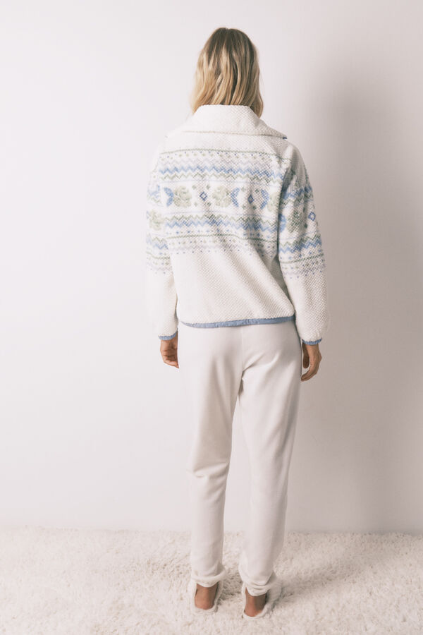 -Parte de arriba de manga larga con estampado Jacquard, cuello alto, tapeta a tono con el estampado en tejido técnico y cremallera. Puños y bajo viveados y cinturilla regulable mediante cordón del mismo tejido.