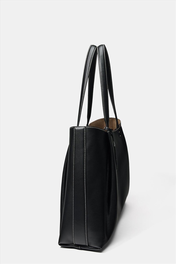 Tote bag. Pinch detail on the top. Shoulder straps. Magnetic clasp closure.