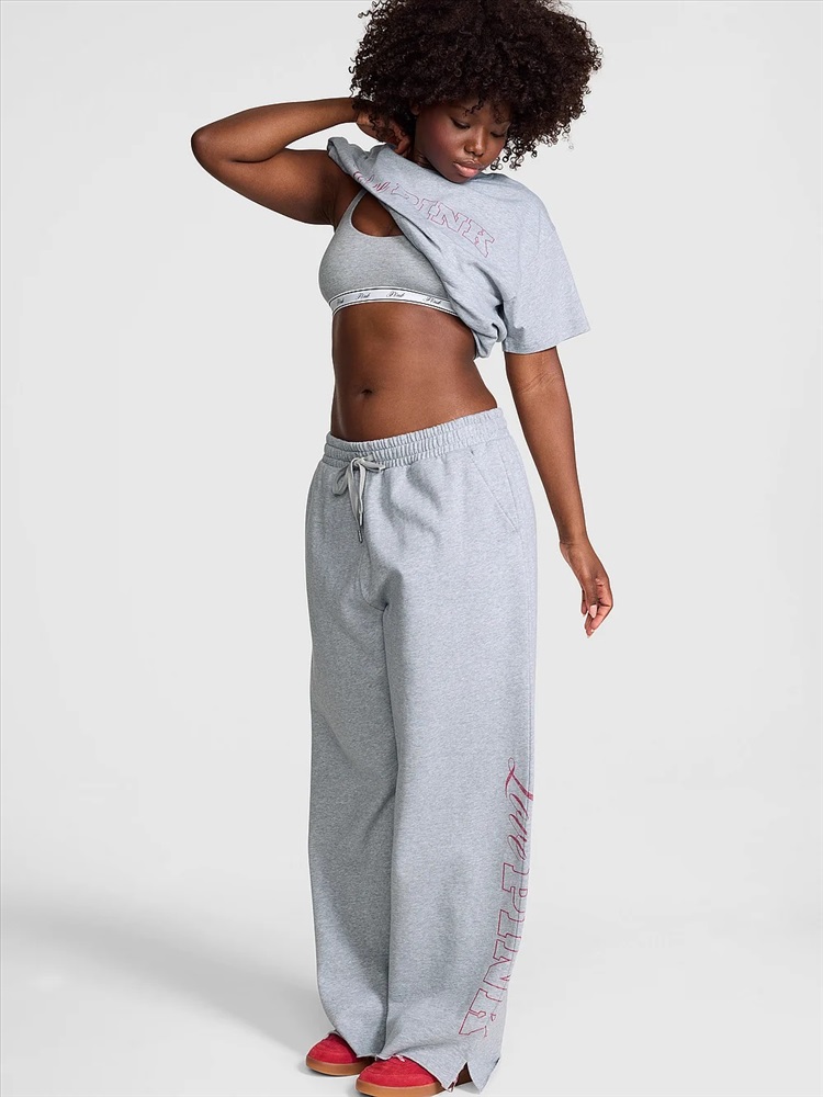 PINK Campus Fleece™ Wide-Leg Split-Hem Sweatpants