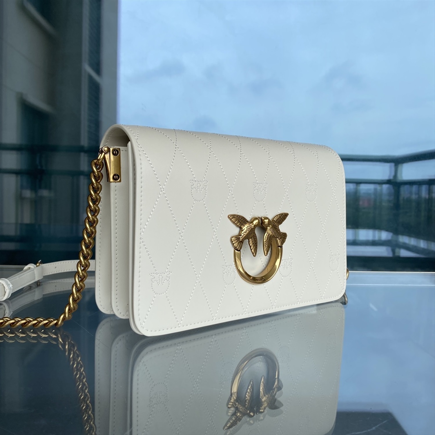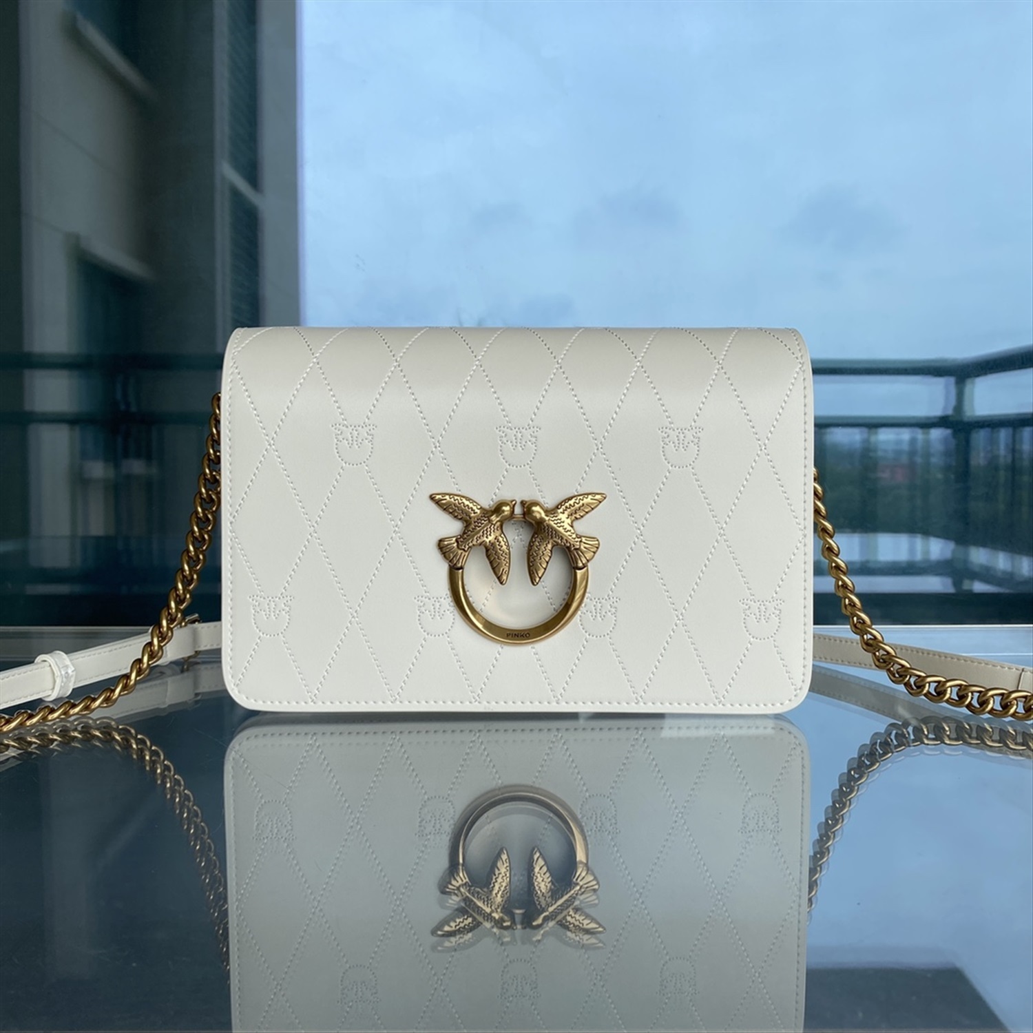 PINKO классическая двойная сумка через плечо с тиснением птицы и ромбов на цепочке, размер: 25*17*