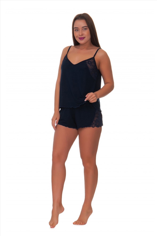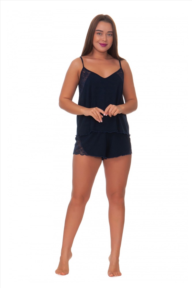 Состав: 100% ХБ Модель: Пижама 1099 Тип товара: пижама с шортами Материал: кулирка | кулирка Бренд: ИП Кичемаев С.К. Карман: без карманов Назначение: для дома НДС: 5% Отделка: с кружевом Посадка: средняя посадка Рисунок: однотонные Рукав: без рукава Сезонность: лето | осень | весна Силуэт: свободный Стиль: домашний Воротник: без воротника Застежка: без застежки Пижама женская: топ на брительках и шорты с гипюровыми вставками. Таблица размеров и весатоп