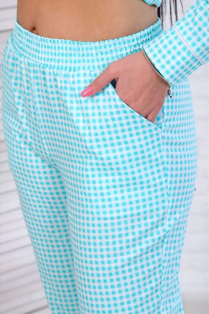 Женская пижама в клеточку с рубашкой и брюками с атласным кантом. Отличный домашний комплект, изготовлен из 100% хлопка, который позволит вашей коже дышать и не будет стеснять ваши движения благодаря мягкой трикотажной ткани. Пижама послужит прекрасным подарком для себя, коллеги и любимым дочке или сестре! Наша модель подойдет под все типы фигур и телосложений. Комплект одежды женский рубашка и брюки с атласным кантом - это пижама для женщин и девочек подростков.
