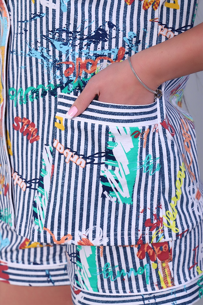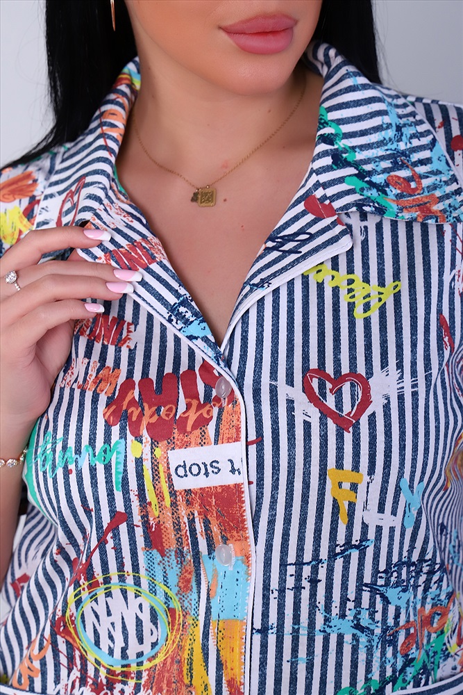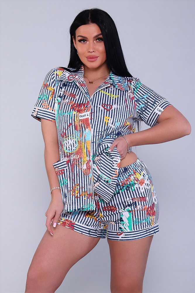 Застежка: пуговицы Женская пижама с шортами, атласным кантом идеальна для семейной фотосессии, она послужит прекрасным подарком для себя, коллеги и любимым дочке или сестре! Это домашний комплект с шортами, состоящий из 100% хлопка, который позволит вашей коже дышать и не будет стеснять ваши движения благодаря мягкой трикотажной ткани. Это очень удобно, ведь наш товар представлен не только как ночная одежда для взрослых, но и как дневная одежда. Наша модель подойдет под все типы фигур и телосложений. Комплект одежды женский рубашка и шорты с атласным кантом - это пижама для женщин и девочек подростков.
