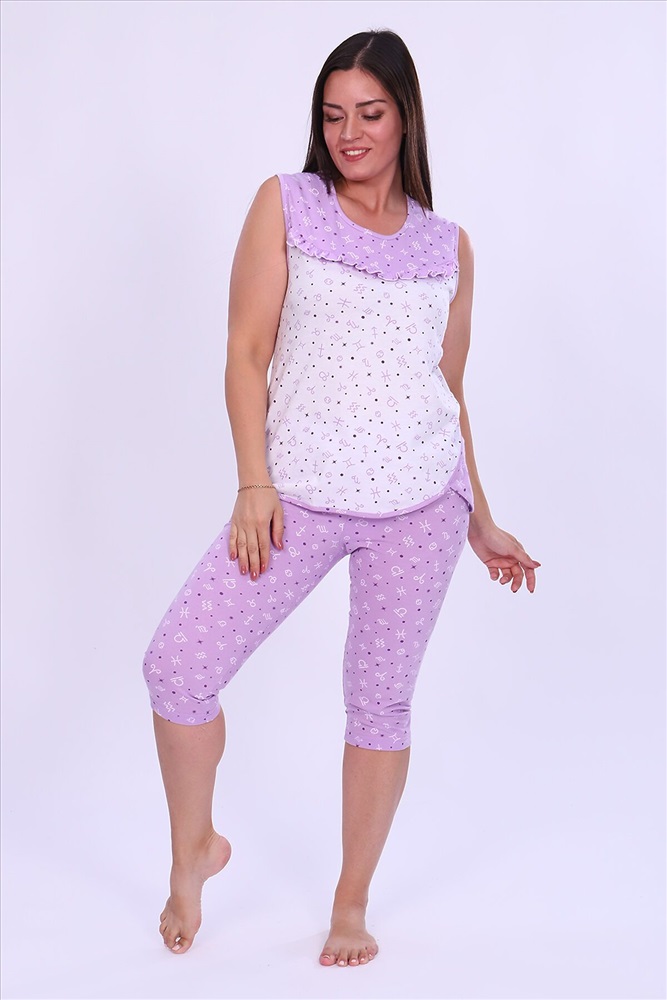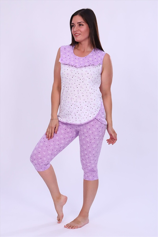 Страна производства: Россия Очаровательные пижамные комплекты из мягкого и нежного натурального хлопка, очень приятного к телу! Состоит из футболки с кокетливой рюшей и удобных бриджей. Домашний комплект отлично садится по фигуре, удобный крой позволяет чувствовать себя свободно и уютно. Удобен в носке и в уходе. Не полиняет и не потеряет форму в течение долгого времени!