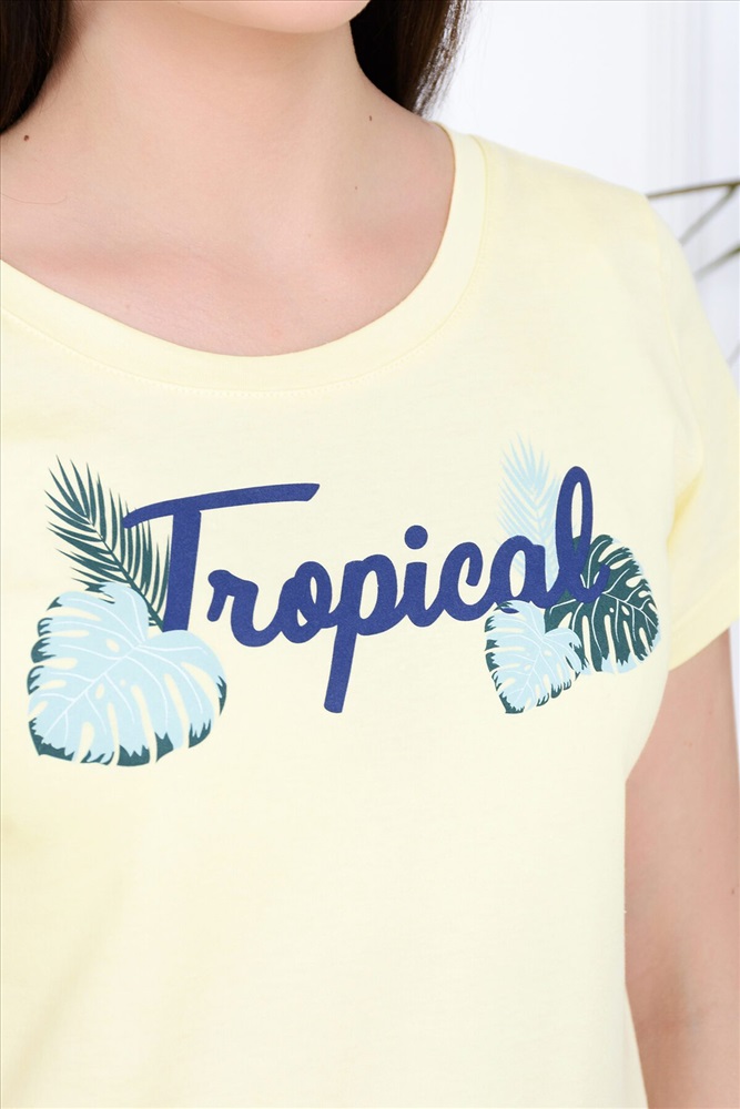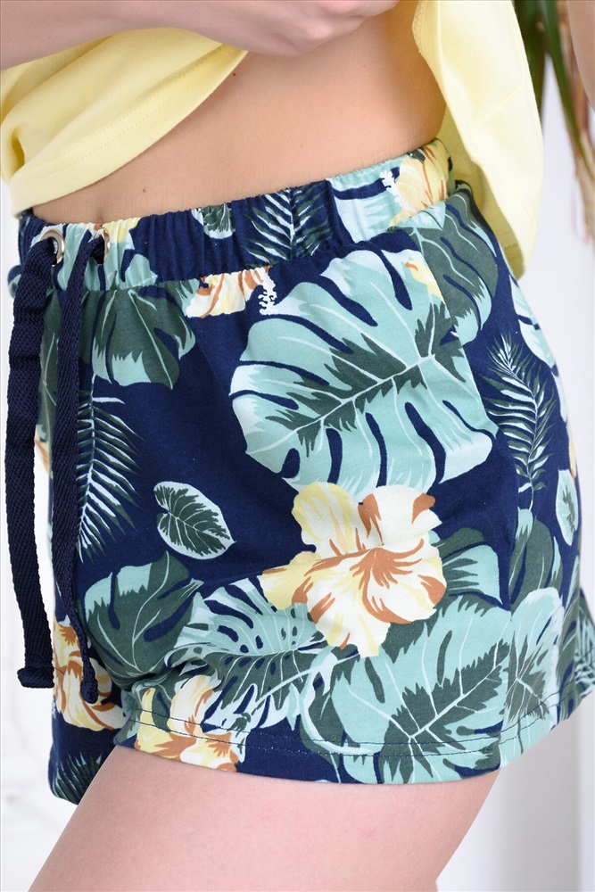 Страна производства: Россия Пижама женская. Футболка выполнена из трикотажного полотна кулирка, с вырезом на спине. Шорты выполнены из трикотажного полотна кулирка, широкого кроя.