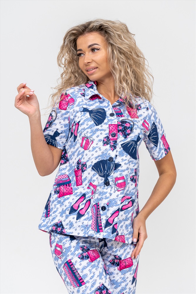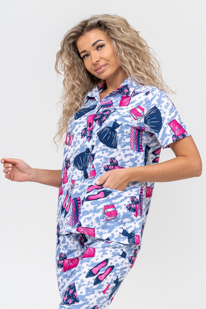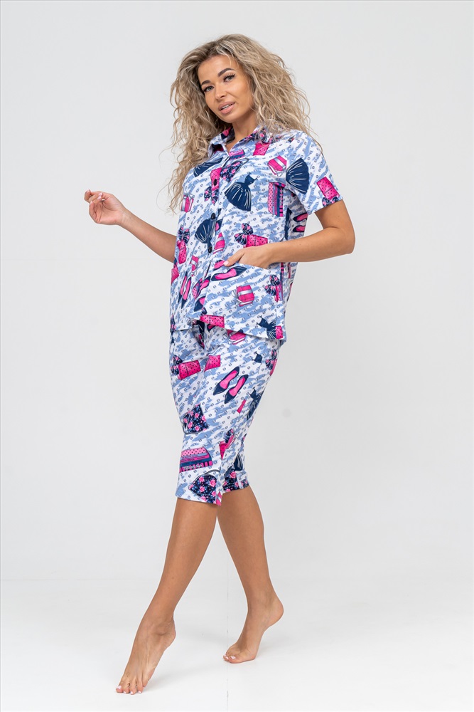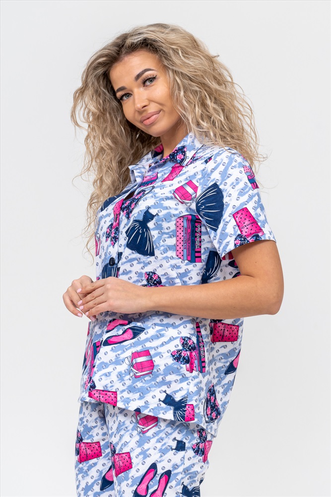Застежка: пуговицы Женская пижама - это идеальная одежда свободного покроя для дома. Состоит из 100% хлопка, не скатывается и сохраняет форму и цвет после множества стирок. Наша модная пижама с бриджами отлично подходит как белье для сна, повседневной носки или фотосессии. Набор двойка выполнен из верха рубашечного плана с воротником, планкой на пуговицах, двумя накладными карманами и бриджами на резинке. Лето, Весна, Осень, Зима - каждый день будет окутан уютом. Удобный трикотажный пижамный костюм предоставит вам крепкий комфортный сон и молодежный стильный вид. Если предпочитаете оверсайз (oversize), то возьмите на размер больше. Наша домашняя одежда прекрасно смотрится на стройных и на полных, на высоких и на миниатюрных. Также данный костюм с бриджами подойдет и для беременных на ранних сроках. Вы можете заказать стильный и приятный новогодний подарок в виде пижамы: жене, для мамы, дочки, девушки, девочки подростка, любимой, для сестры, подруги или бабушки. Вы можете сделать сюрприз на любой праздник: на Новый Год, Рождество, 8 марта, День Святого Валентина, День Матери, День Рождения. И будьте уверены, что она станет вашим любимым элементом гардероба!