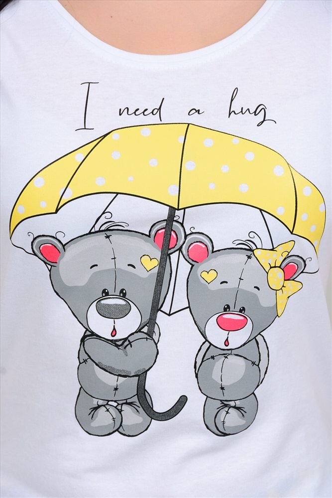 Страна производства: Россия Удобный хлопковый костюм для дома и дачи. Футболка не стесняет движений, на полочке милый принт. Брючки с завышенной талией с кармашками длиной 3/4. Прекрасный комплект для каждодневного использования.