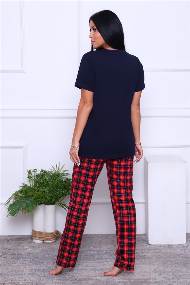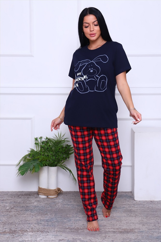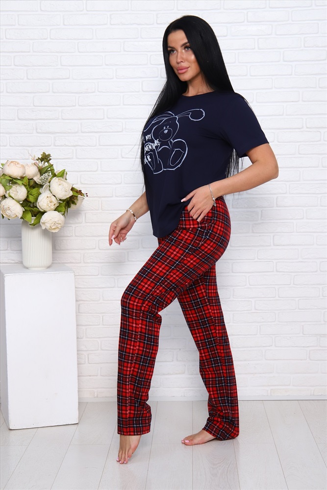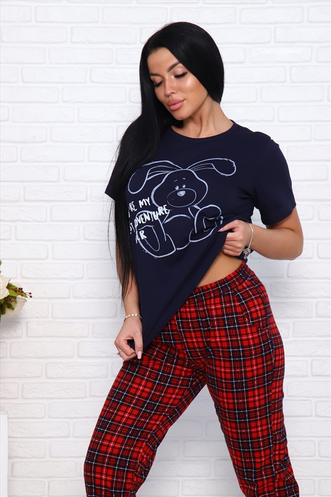 Состав: хлопок 100% Модель: Пижама 57053 Тип товара: пижама с брюками Материал: кулирка | кулирка Бренд: Натали Суслова Карман: боковые Назначение: для дома НДС: 5% Особенности: на резинке Отделка: с печатью Рисунок: клетка | зверюшки Рукав: короткий рукав Сезонность: лето | осень | весна | зима Силуэт: прямой Стиль: домашний Воротник: без воротника Застежка: без застежки Пижама женская с актуальным новогодним принтом заяц на футболке. Стильные брюки в клетку с удобными карманами и комфортным мягким поясом. Милая уютная домашняя одежда подарит радость Вам и вашим близким! Таблица размеров и весафутболка