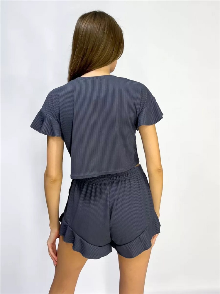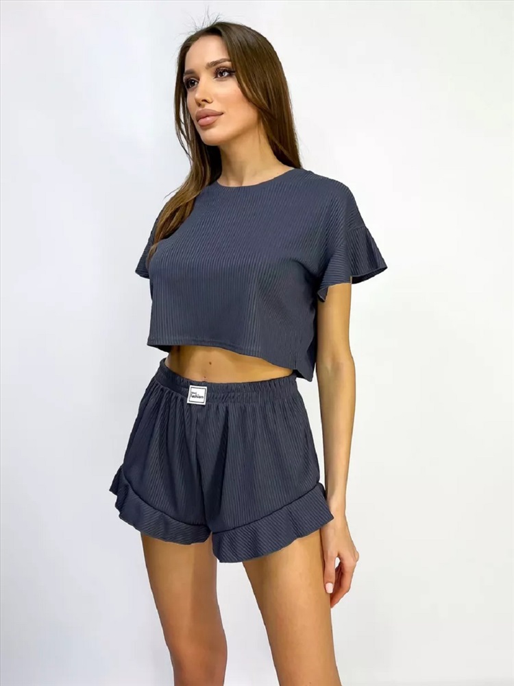 Состав: 95% п/э, 5% лайкра Модель: Пижама 83501 Тип товара: пижама с шортами Материал: лапша | лапша Бренд: Натали Суслова Карман: без карманов Назначение: для дома НДС: Без НДС Особенности: на резинке Отделка: с воланами | с волнистым краем Рисунок: однотонные Рукав: короткий рукав Сезонность: лето | осень | весна | зима Силуэт: свободный Стиль: домашний Воротник: без воротника Застежка: без застежки Модная пижама с шортами и топом с коротким рукавом это идеальный выбор качественной домашней одежды! Благодаря мягкой трикотажной ткани в рубчик лапша и свободному крою оверсайз комплект не будет стеснять движения, не линяет, не теряет форму после стирки и не скатывается. Одежда будет комфортной не только во время сна также подойдет для повседневной носки дома в независимости от времени года. Таблица размеров и веса