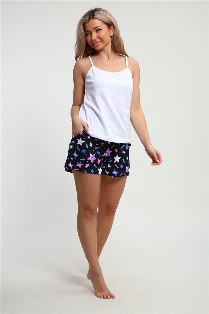 Состав: хлопок 100% Модель: Пижама 88133 Тип товара: пижама с шортами Материал: рибана | рибана Бренд: Натали Суслова Карман: боковые | прорезные Назначение: для дома НДС: Без НДС Особенности: на резинке Отделка: с карманами Посадка: высокая посадка Рисунок: однотонные | разное Рукав: без рукава Сезонность: лето | осень | весна | зима Силуэт: свободный Стиль: домашний Воротник: без воротника Застежка: без застежки Пижама женская с шортами и топом. Шорты с карманами и поясом. Данная модель выполнена из трикотажного полотна рибана. Топ на брителях . Таблица размеров и весашорты