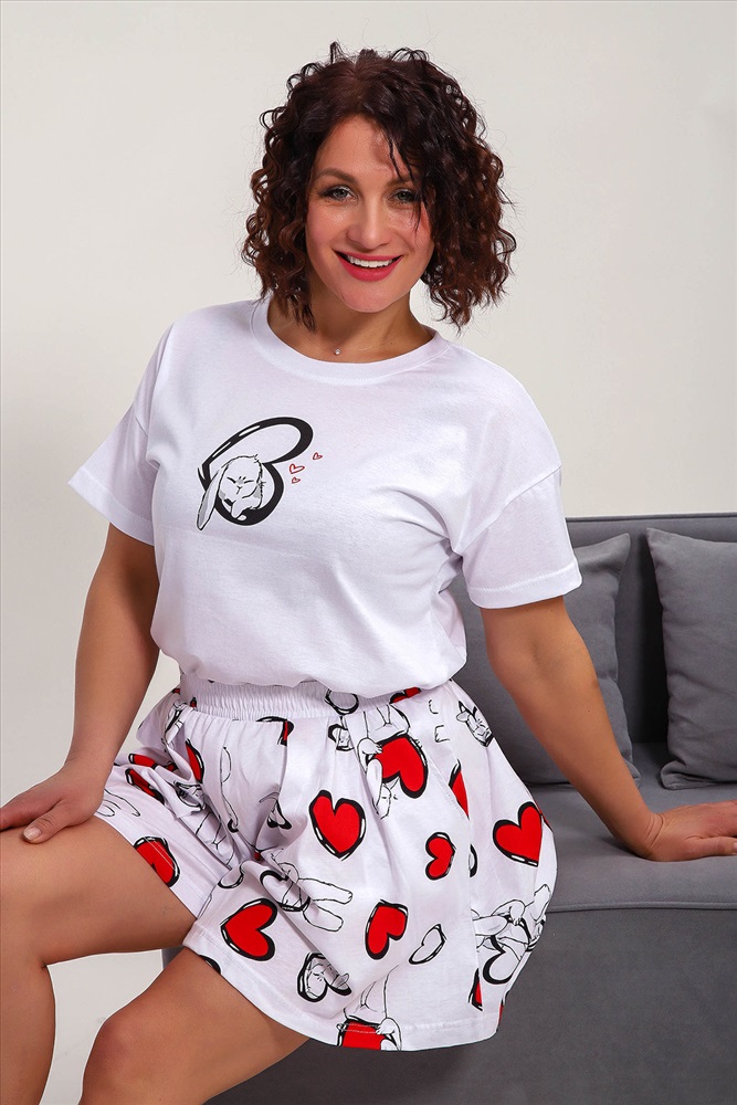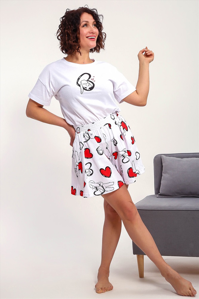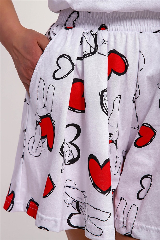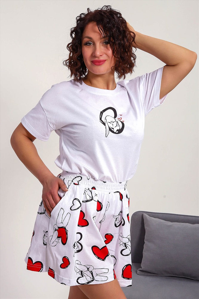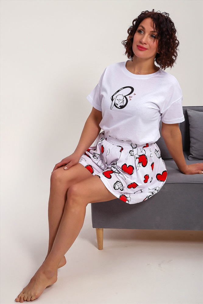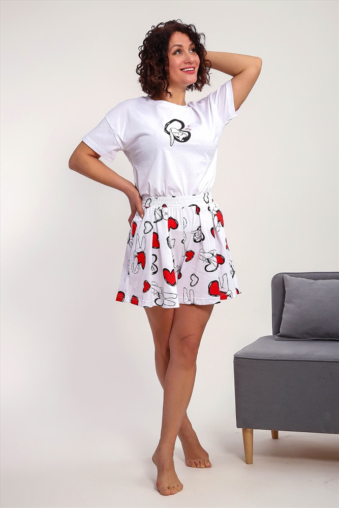 Состав: хлопок 100% Модель: Пижама 88143 Тип товара: пижама с шортами Материал: кулирка | кулирка Бренд: Натали Суслова Карман: боковые | прорезные Назначение: для дома НДС: Без НДС Особенности: на резинке Отделка: с карманами | со складками Посадка: высокая посадка Рисунок: сердечки | зверюшки Рукав: короткий рукав Сезонность: лето | осень | весна | зима Силуэт: свободный Стиль: домашний Воротник: без воротника Застежка: без застежки Пижама женская с шортами-юбка и футболкой со спущенным рукавом. Данная модель выполнена из трикотажного полотна кулирка ( хлопок 100%). На футболке присутствует принт. Шорты с поясом и карманами. Складки на шортах придают воздушность и комфорт, свобода в движениях. Пижама порадует вас. Таблица размеров и веса