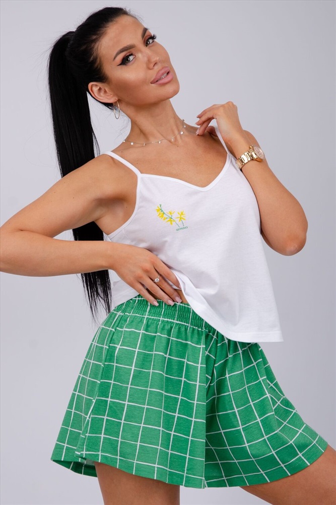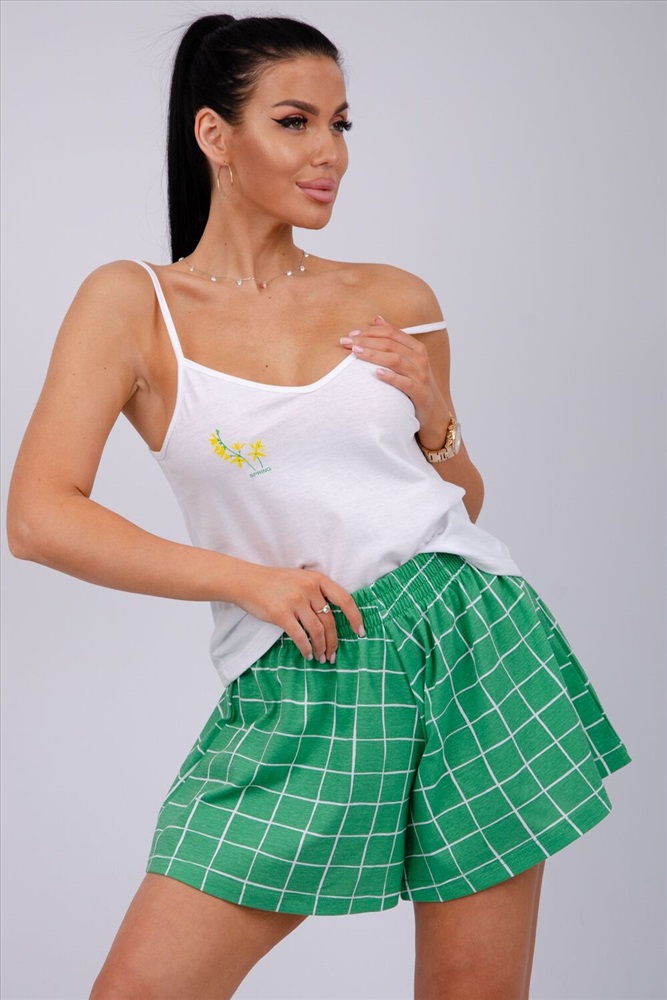 Застежка: без застежки Эта женская пижама станет идеальным выбором для комфортного отдыха дома. Она сшита из мягкого, приятного на ощупь материала. Каждый элемент продуман для максимального удобства. Топ имеет аккуратный вырез, а шорты обеспечивают свободу движения.