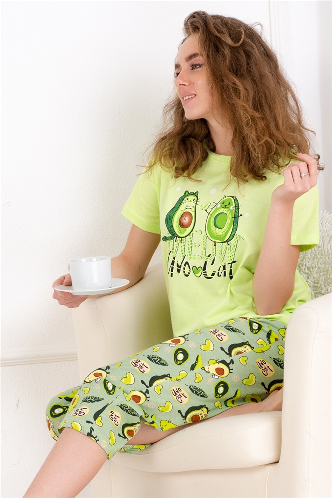 Состав: 100% хлопок Модель: Пижама Бусинка Тип товара: пижама с бриджами Материал: кулирка | кулирка Бренд: Натали Суслова Назначение: для дома НДС: 5% Отделка: с печатью Рейтинг: Рейтинг 4 и выше Рисунок: фуд-принт | крупный принт Рукав: короткий рукав Сезонность: лето | осень | весна | зима Силуэт: свободный Стиль: домашний | молодежный Уютная пижамка с оригинальным принтом Авокэт. Футболка со спущенной линией плеча, бриджи свободного кроя. Можно использовать как домашний костюм. Рекомендуется деликатная стирка. Таблица размеров и весафутболка
